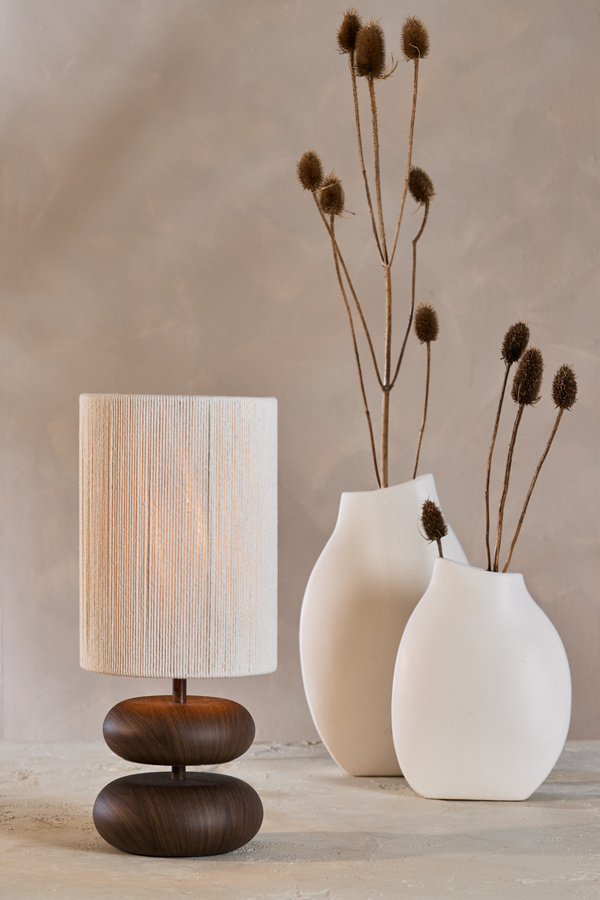 Tafellamp Danialo past heel goed in een Japandi, Scandinavisch of Wabi Sabi interieurstijl. Door de rustige kleuren en de natuurlijke uitstraling wordt de tafellamp versterkt deze jouw inrichting.