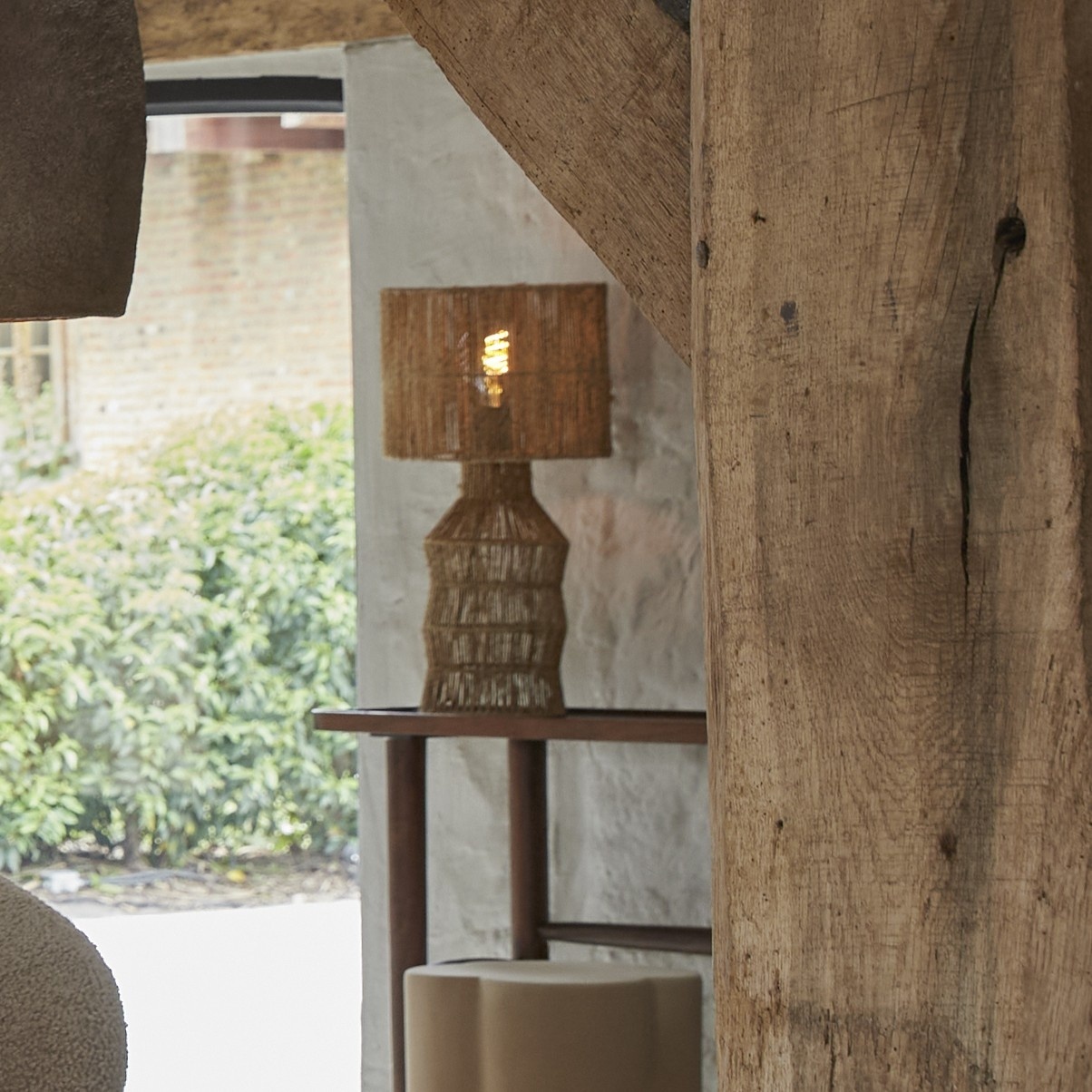 Deze natuurlijke tafellamp voegt niet alleen licht toe, maar ook een vleugje sfeer en ambachtelijke charme. Combineer hem met warme tinten en natuurlijke materialen voor een harmonieus interieur.