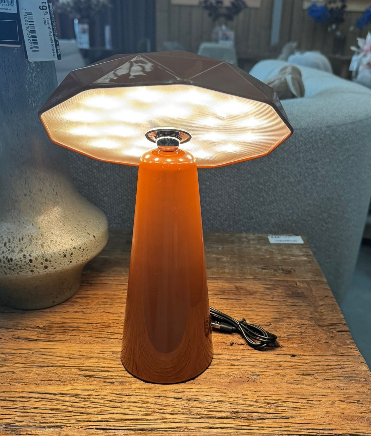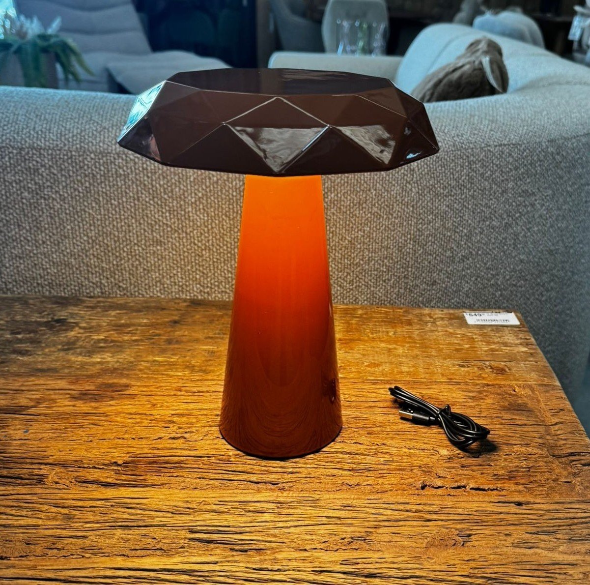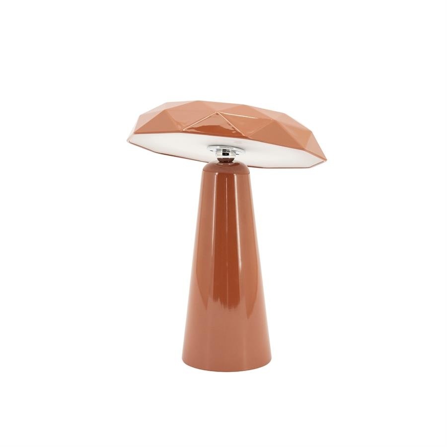 Het unieke ontwerp van de kap geeft de lamp een bijzonder karakter. Door de facetten in de kap ontstaat een subtiel lichtspel, wat zorgt voor een sfeervolle verlichting. De lamp is daardoor perfect voor op een dressoir, nachtkastje, bureau of bijzettafel.