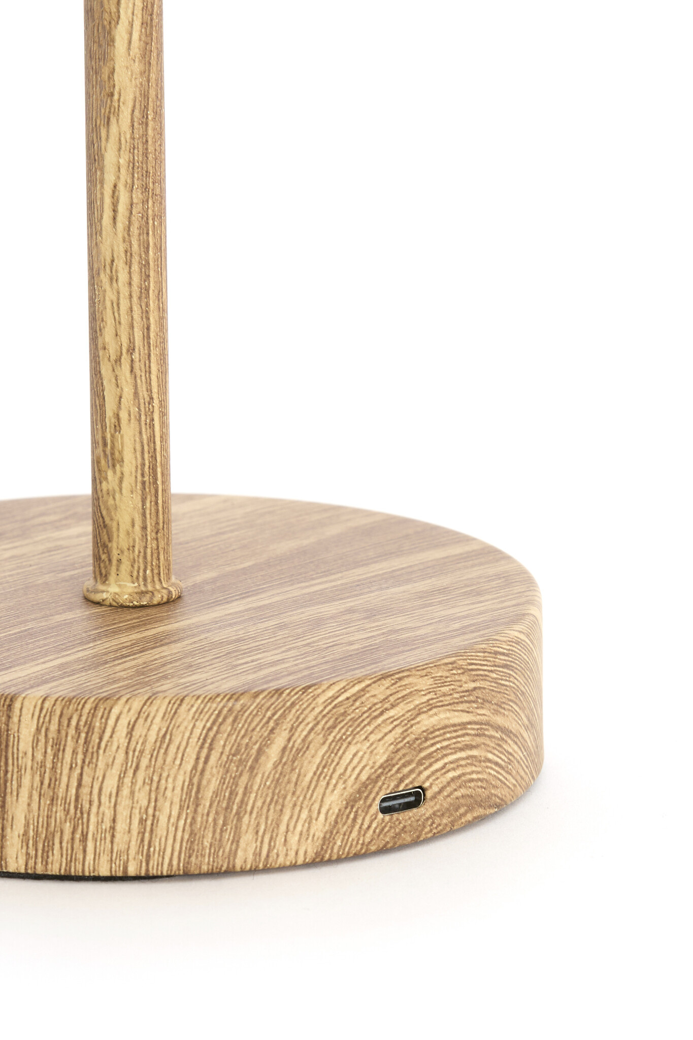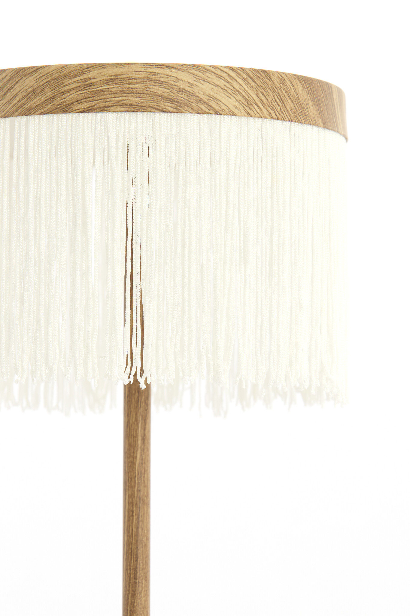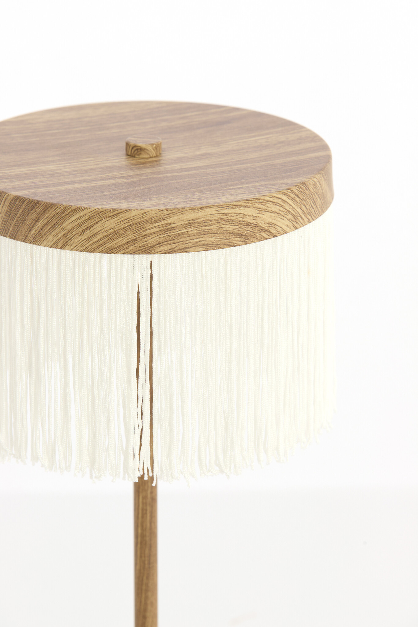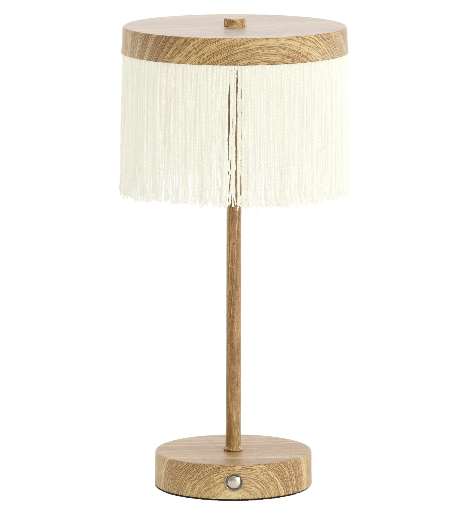 Tafellamp DINY LED Ø17x35 cm – Houtprint + Crème Franje | Light & Living