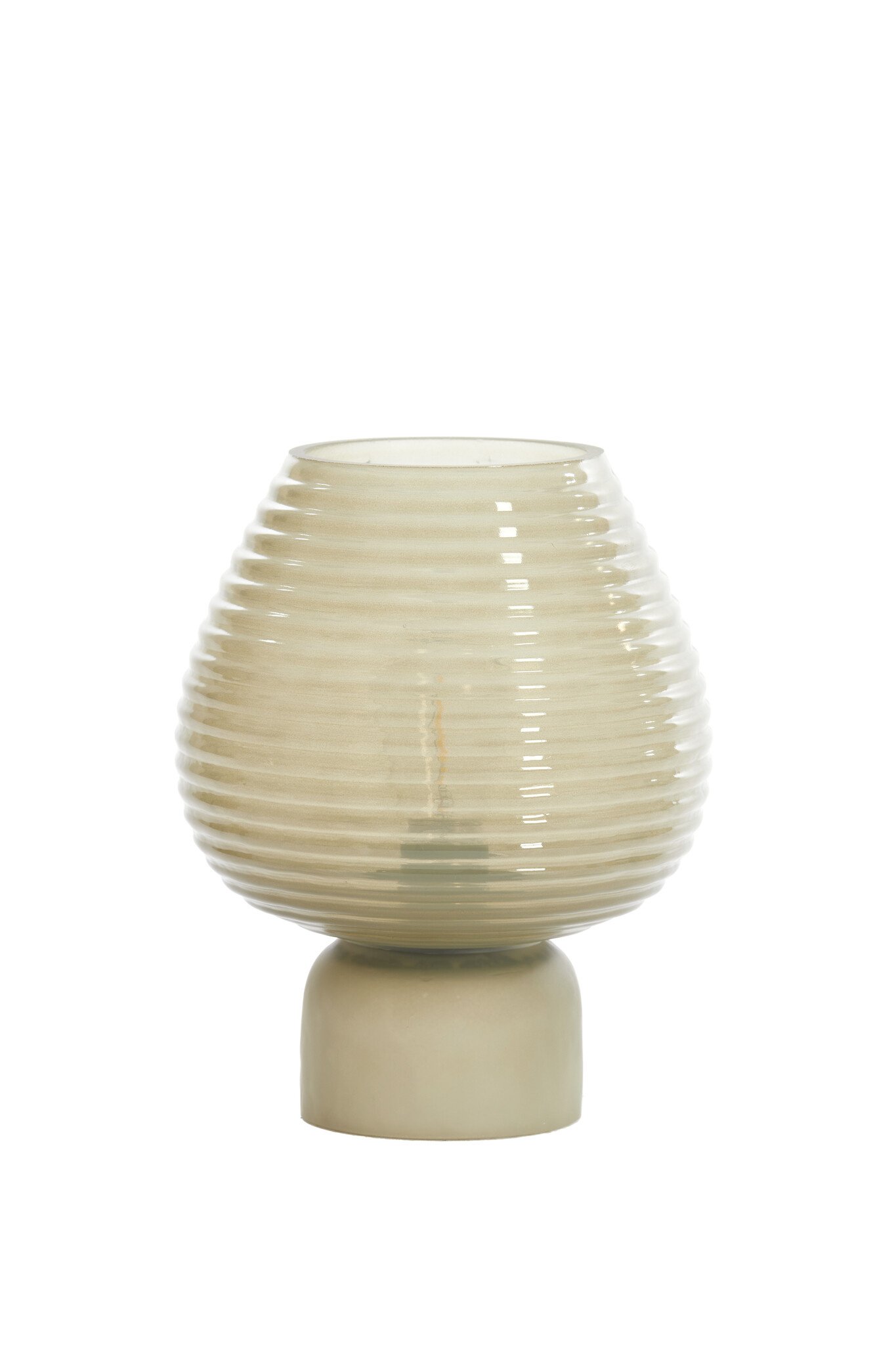 Leuke tafellamp in de vorm van grijs groen getint glas met led verlichting op batterijen. Tafellamp Alenna heeft een mooie warme kleur en mooie ronde vormen. Dit tafellampje kun je overal zetten doordat deze op batterijen werkt. Ook leuk voor onder de veranda op een mooie zomeravond. Verkrijgbaar in verschillende kleuren. Leuk om met elkaar te combineren.