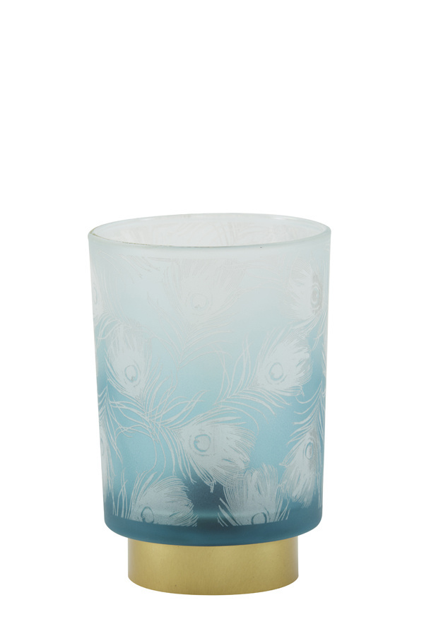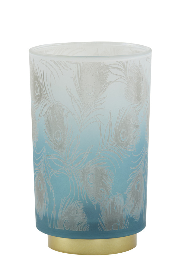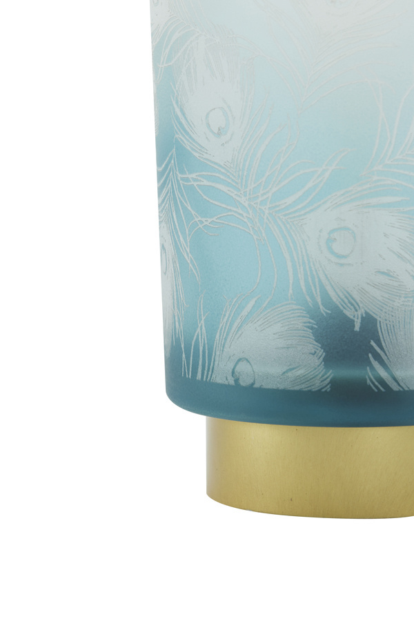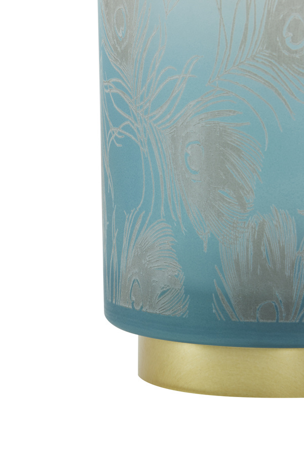 Sfeervol, trendy en handig. Dit tafellampje is een ideale sfeermaker in huis. De tafellamp is van glas en voorzien pauwenveren afdruk.