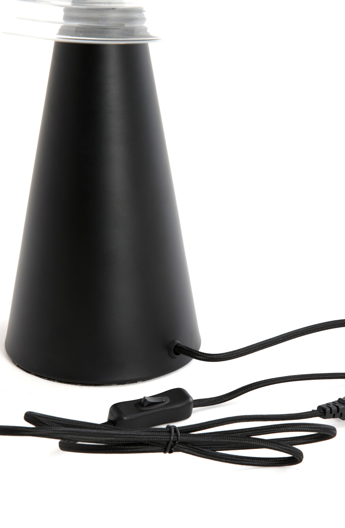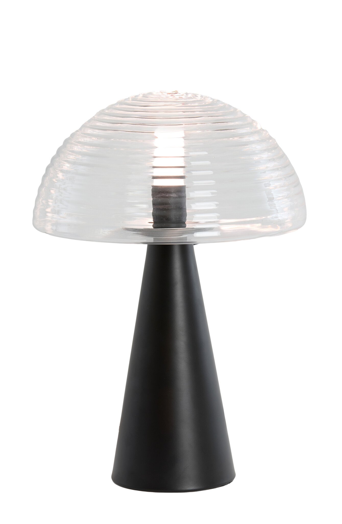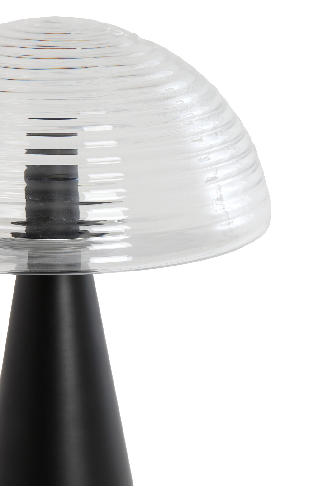 Tafellamp Mueda heeft een leuke paddenstoel vorm en is door de glazen kap enorm sfeervol. De voet heeft een mat zwarte kleur waardoor de lamp een moderne uitstraling heeft. In een woonkamer, slaapkamer of op een bureau komt deze tafellamp helemaal tot zijn recht. De afmeting van de tafellamp is Ø30x43 cm.