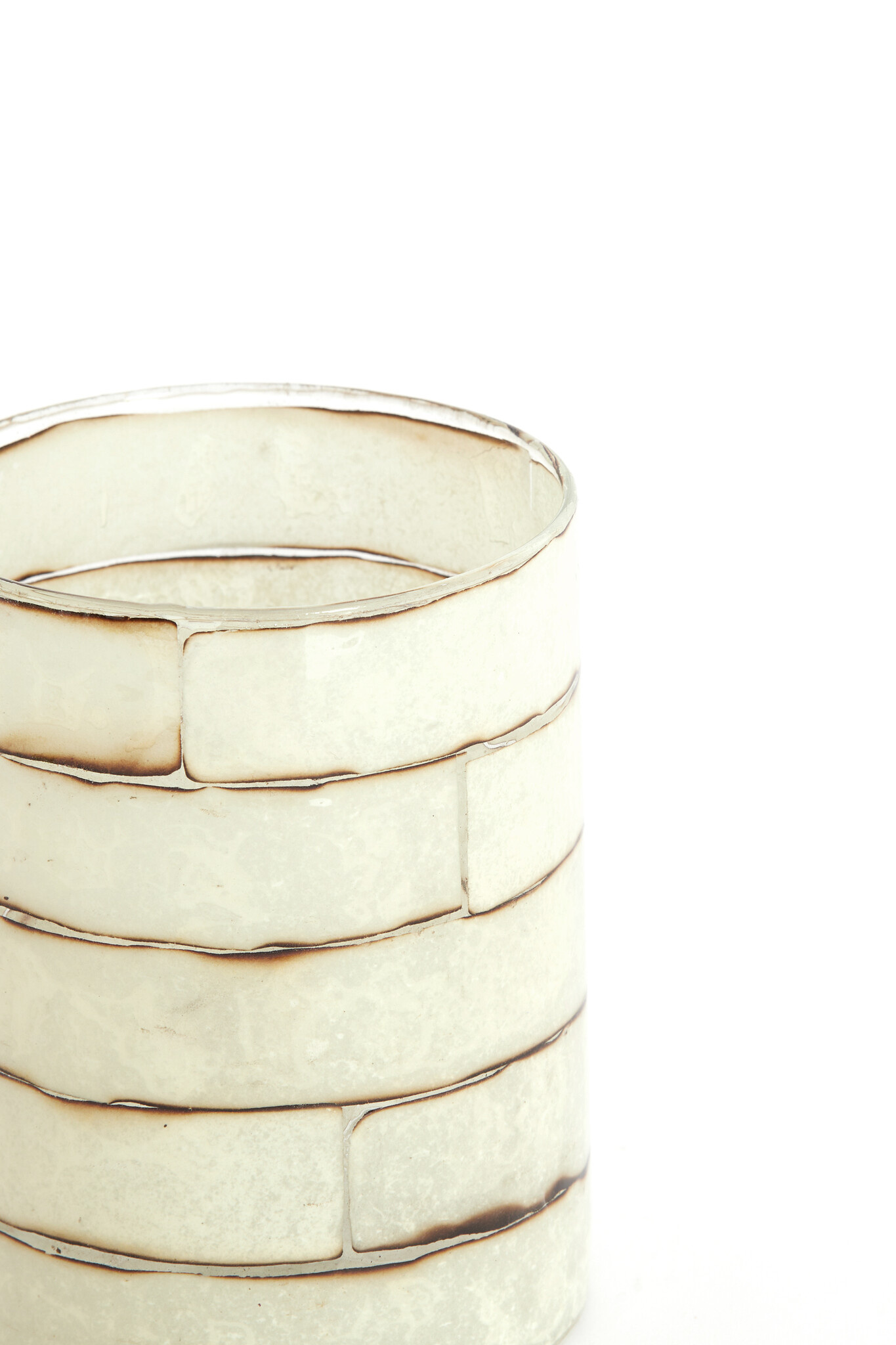 Geef je interieur een subtiele, frisse touch met het DRONERI theelicht van Light & Living. Dit stijlvolle theelicht is vervaardigd uit helder glas met een speels patroon in zacht Crème, afgewerkt met subtiele donkere accenten tussen de glasstroken voor extra diepte en karakter.