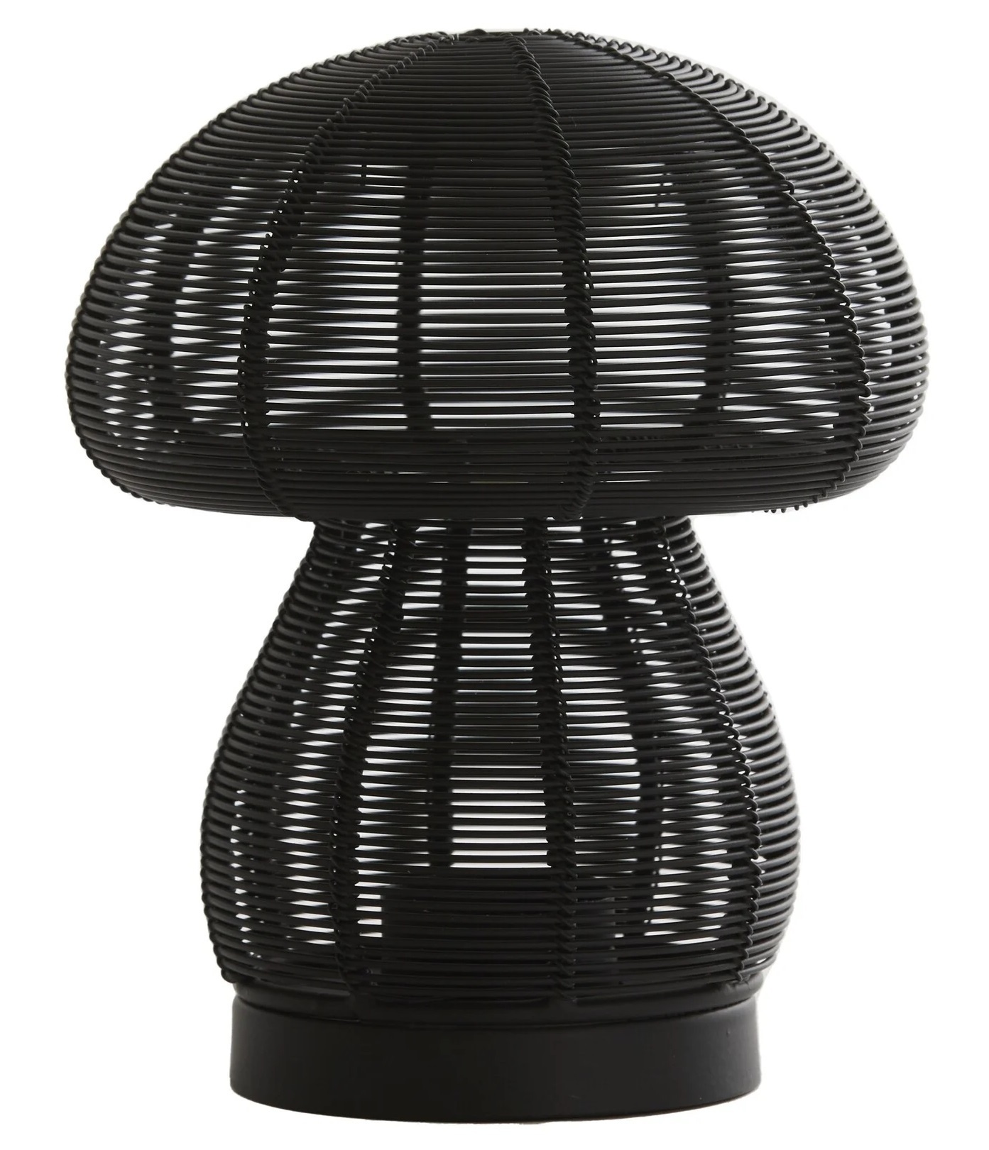 Het licht schijnt prachtig door de metalen spijlen van dit windlicht. In de vorm van een paddenstoel, leuker kan niet!