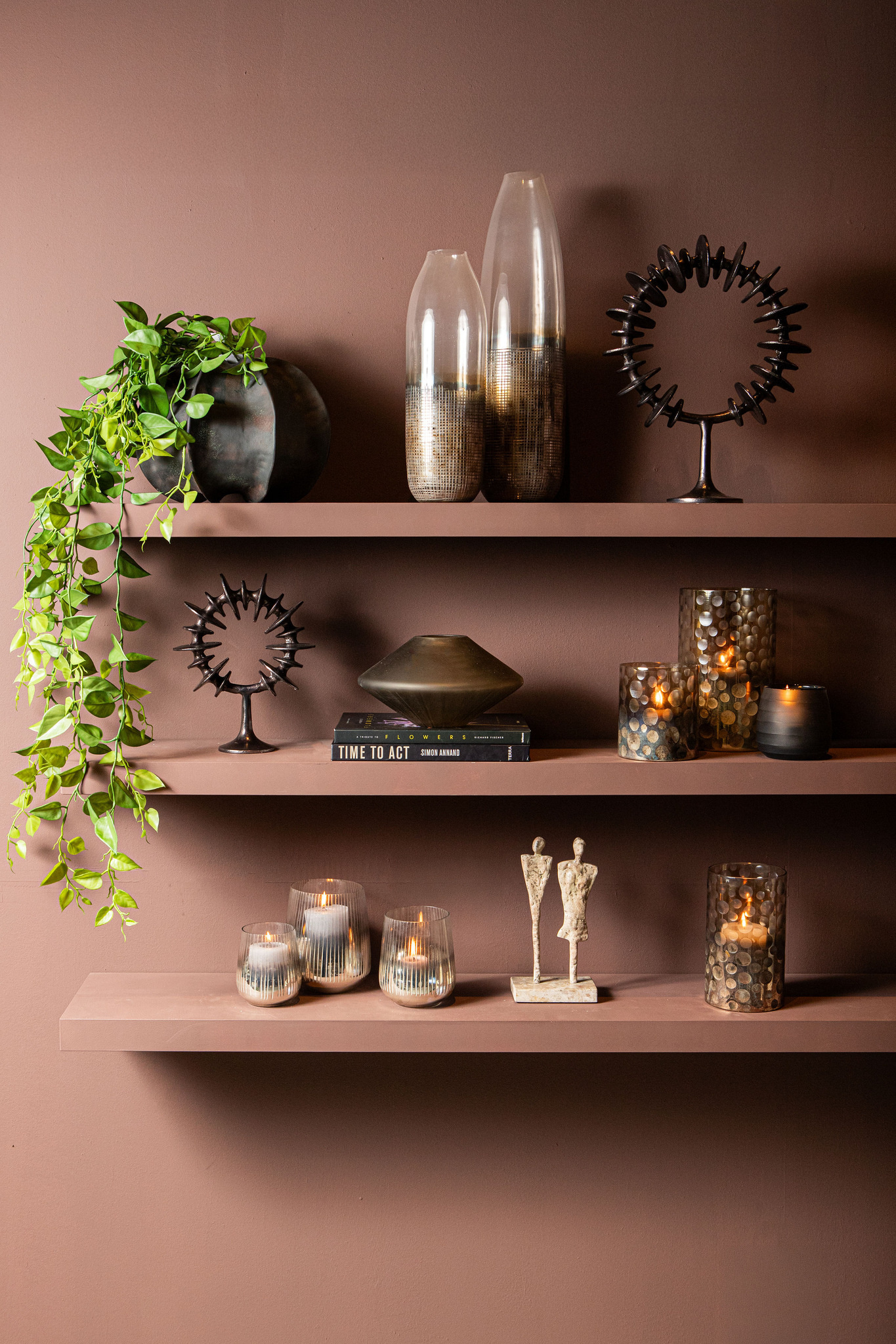 De warme bruine kleur en het subtiele patroon maken dit theelicht geschikt voor uiteenlopende interieurstijlen, van modern en industrieel tot hotel chique en landelijk.
