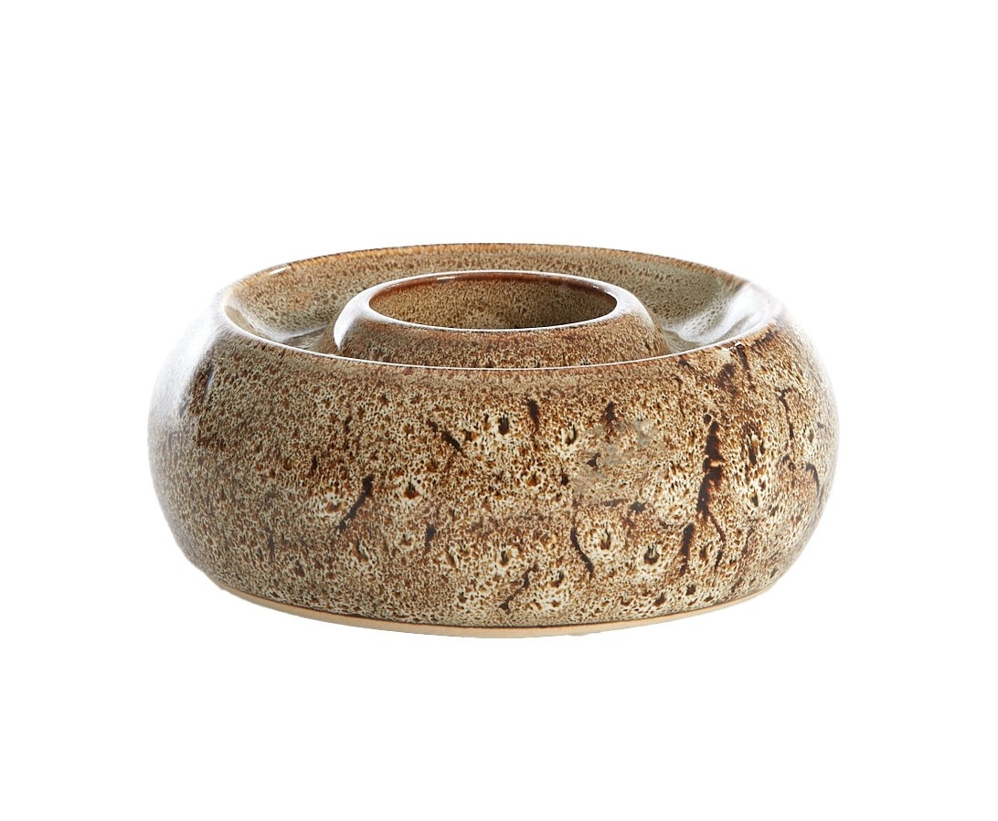 Warme bruine tint met speels glazuurpatroon