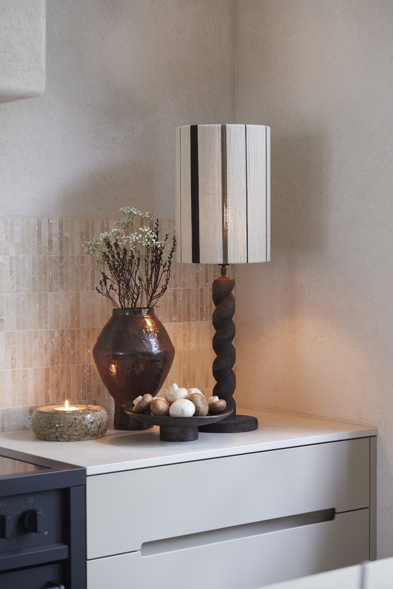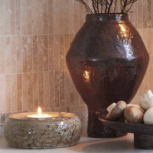 Dankzij het royale formaat van 20,5 cm breed en 7,5 cm hoog is deze theelichthouder ideaal als statement piece op de salontafel, eettafel, open kast of sidetable. Het zachte, warme licht van een theelichtje komt extra mooi tot zijn recht door de verfijnde rondingen en de rustieke afwerking van het keramiek.