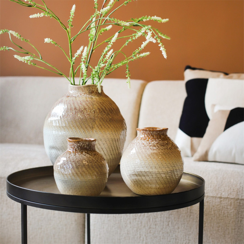 De Vaas Alban S bruin van Countryfield is een verfijnde toevoeging aan elk interieur. Met zijn warme, natuurlijke kleuren en tijdloze design straalt deze compacte vaas rust en elegantie uit.