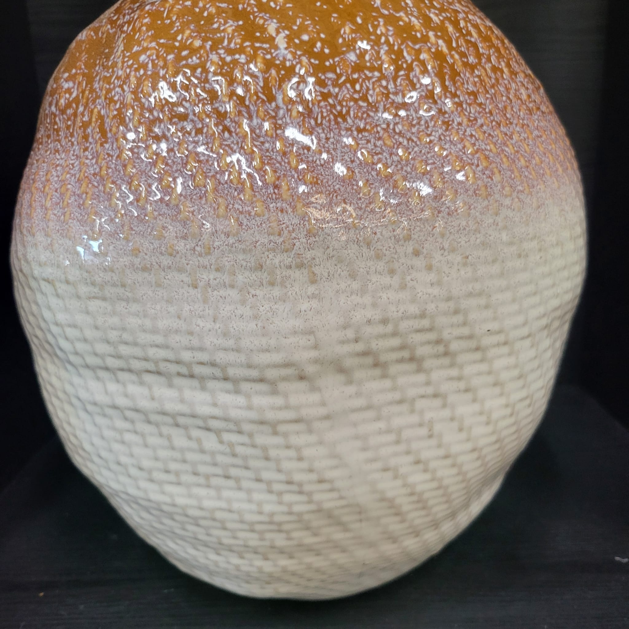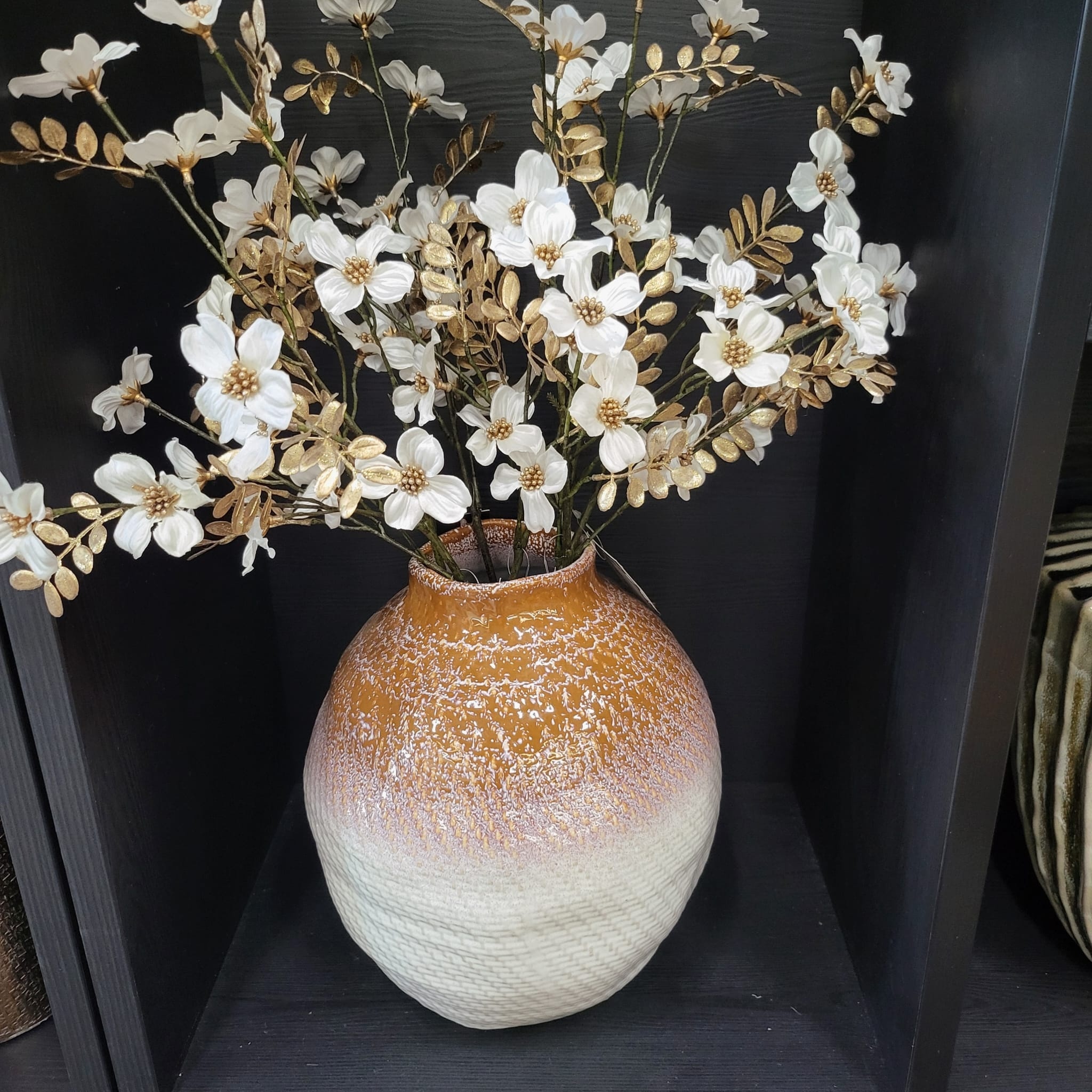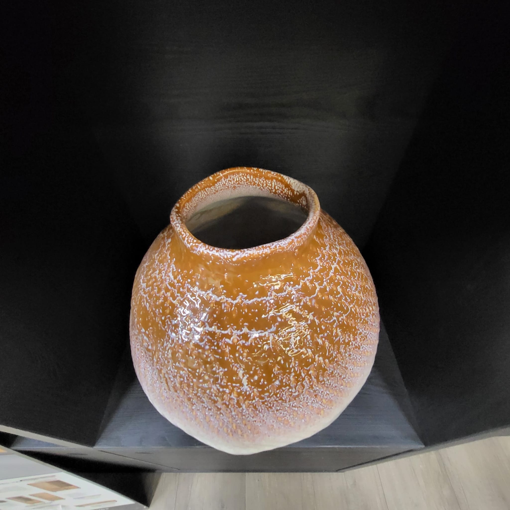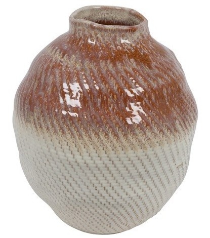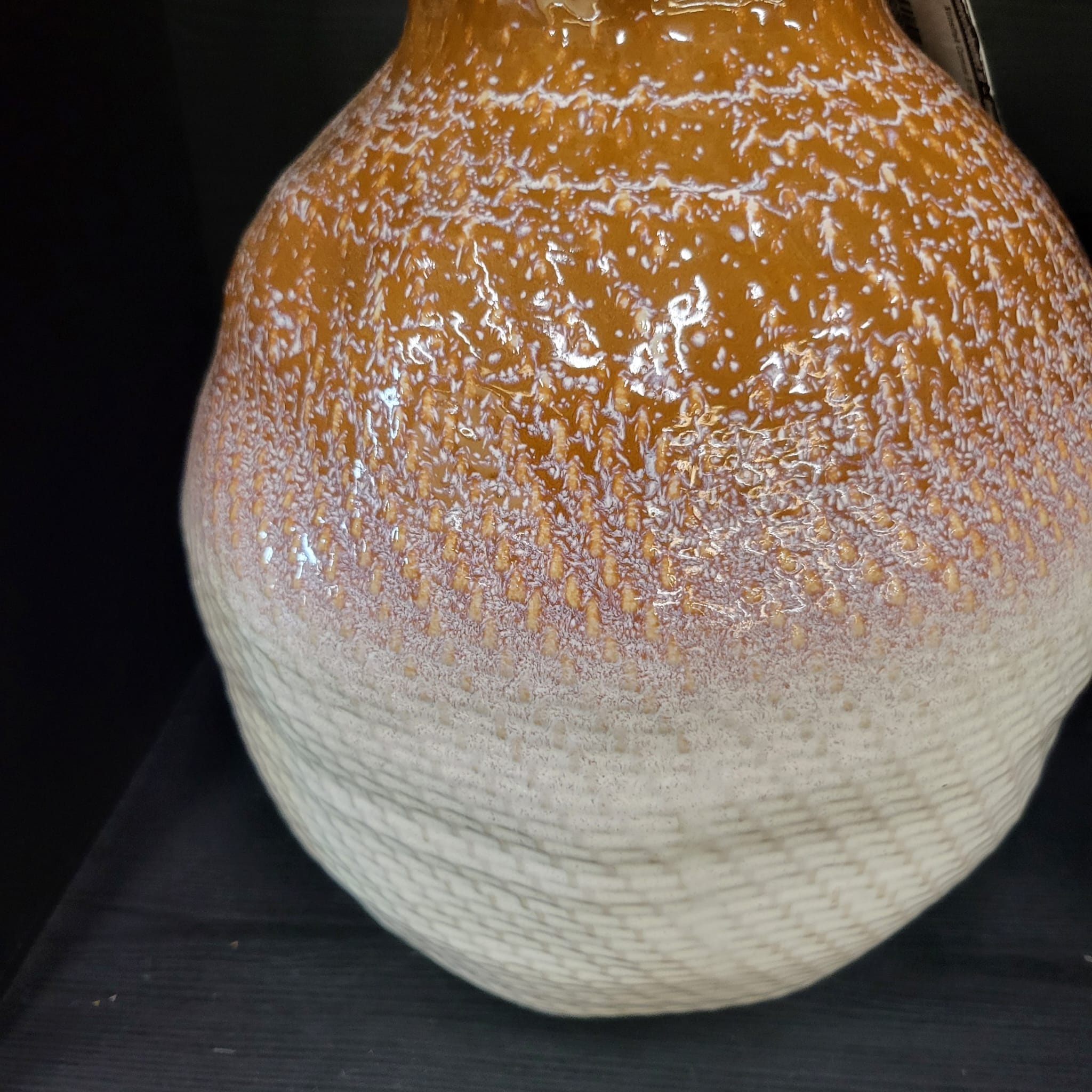 Deze stenen vaas heeft een unieke structuur en een glanzende afwerking, wat zorgt voor een subtiele, maar luxe uitstraling. Het kleurverloop van crème naar bruin maakt hem een echte eyecatcher zonder schreeuwerig te zijn.