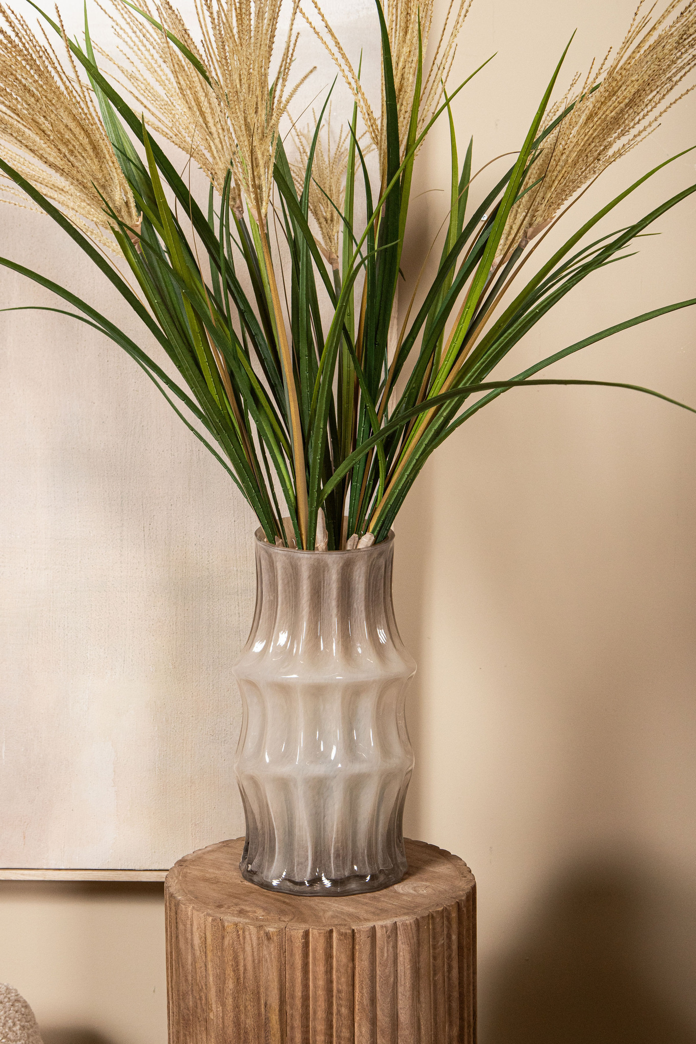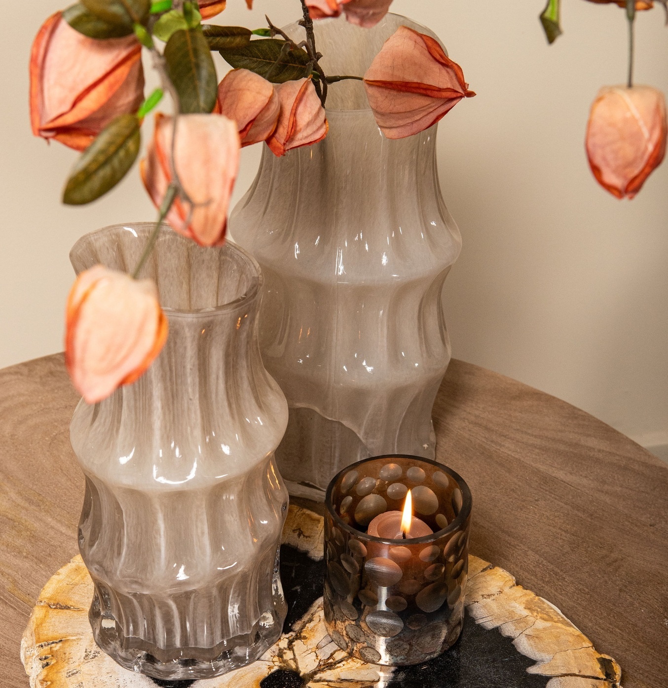 De Vaas Anvi Crème glas hoekig rond M van PTMD combineert een zachte kleur met een krachtig ontwerp. Het subtiele hoekige reliëf geeft de vaas een moderne uitstraling, terwijl de ronde vorm zorgt voor balans en elegantie.