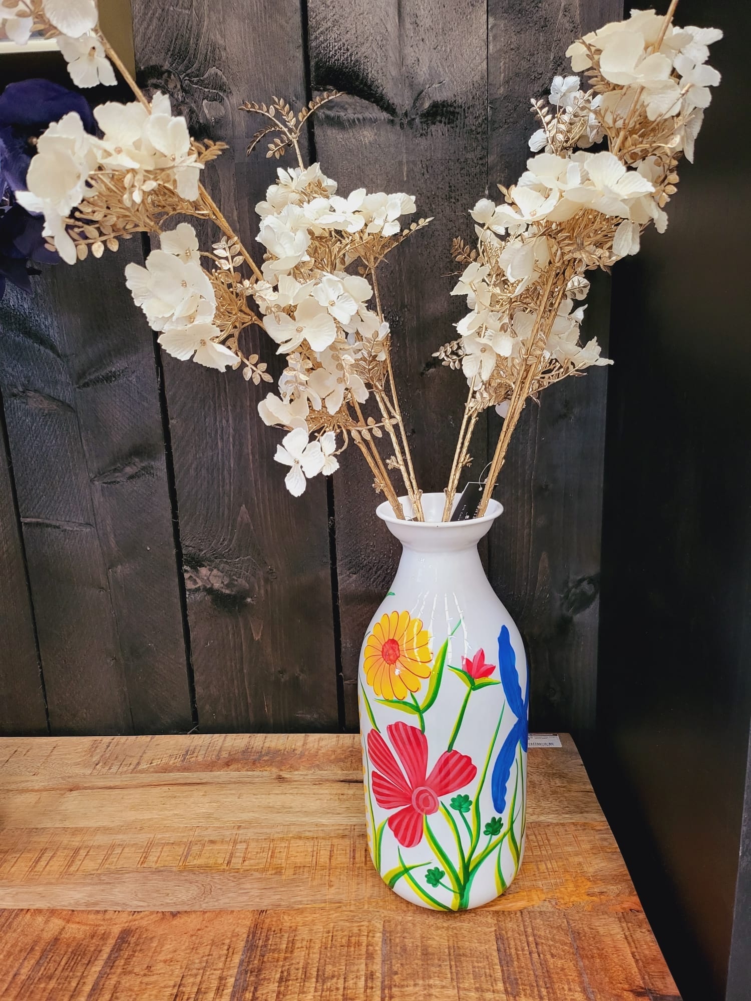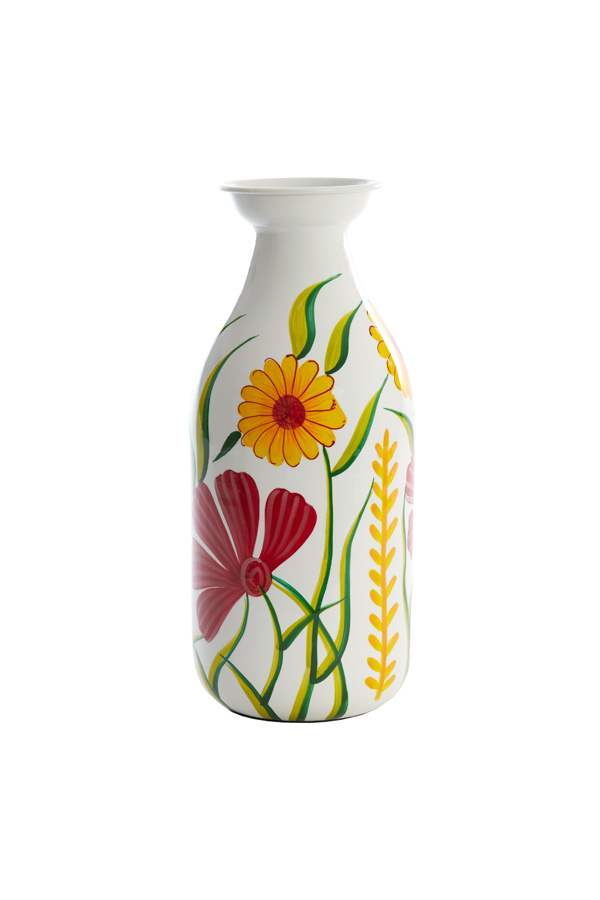 De Vaas Deco EKIMULI valt op door haar unieke ontwerp, waarbij een moderne witte basis wordt gecombineerd met sierlijke bloemenpatronen. Deze combinatie zorgt voor een frisse en levendige uitstraling die elk interieur kan opfleuren. Met afmetingen van Ø15 x 36 cm is deze vaas groot genoeg om een statement te maken, maar ook compact genoeg om op verschillende plekken in je huis te plaatsen.