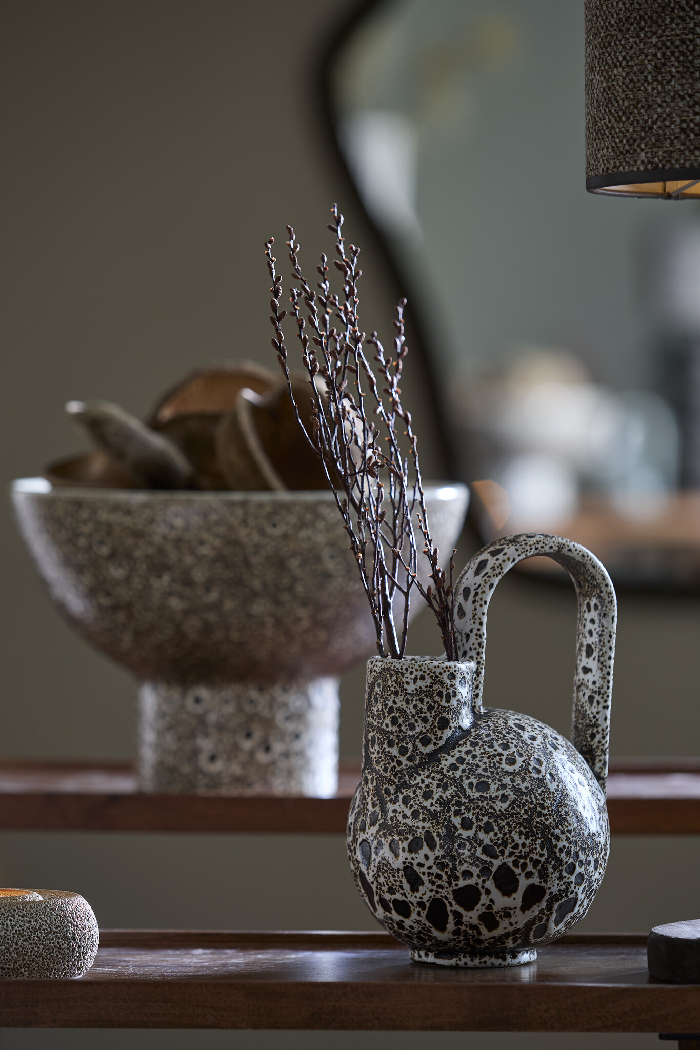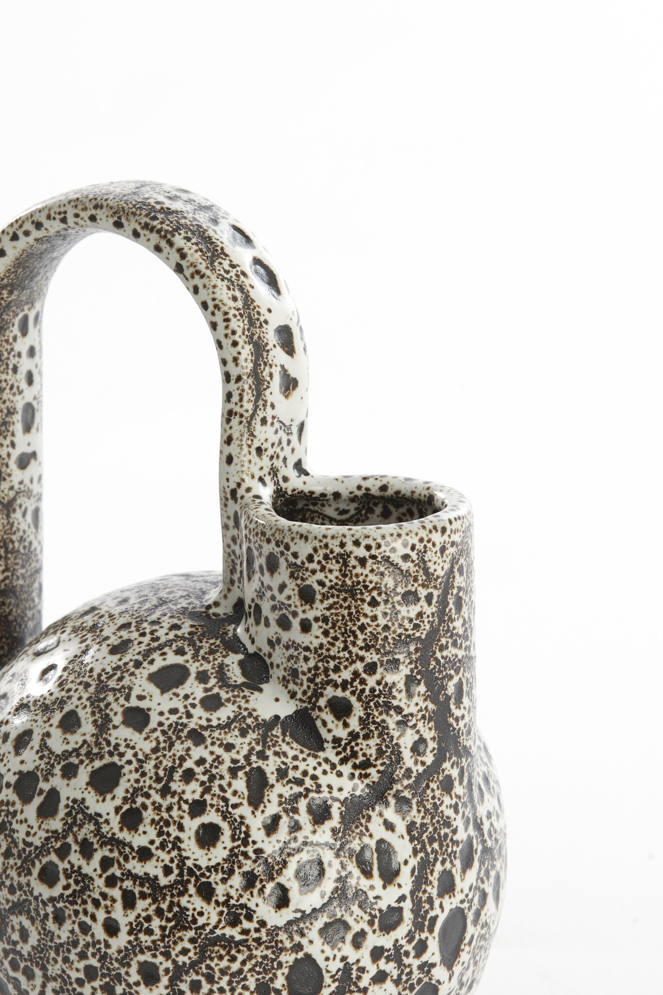De hoge, ranke hals en het elegante handvat zorgen voor een modern, sculpturaal effect. Perfect als opzichzelfstaand decoratiestuk, maar ook stijlvol met enkele droogtakken of pluimen. Dankzij de neutrale kleuren past SERRES moeiteloos in een modern, industrieel, chique of organisch interieur.