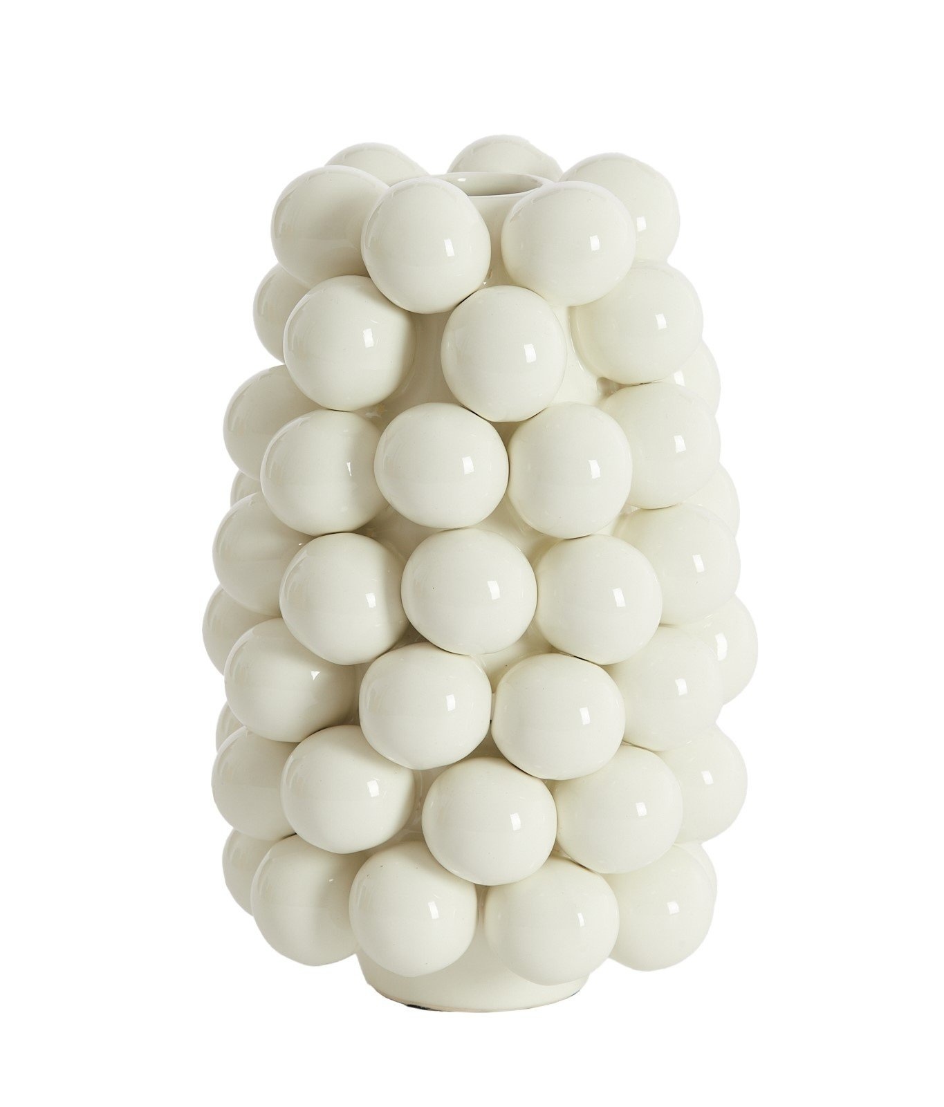 Deze mooie ronde vaas bestaat uit allemaal ballen. Dit maakt de vaas zo mooi, dat er haast geen bloemen meer nodig zijn om hier een eyecatcher van te maken. Deze vaas past in verschillende soorten interieurs. De vaas is ook in andere maten en kleuren beschikbaar.