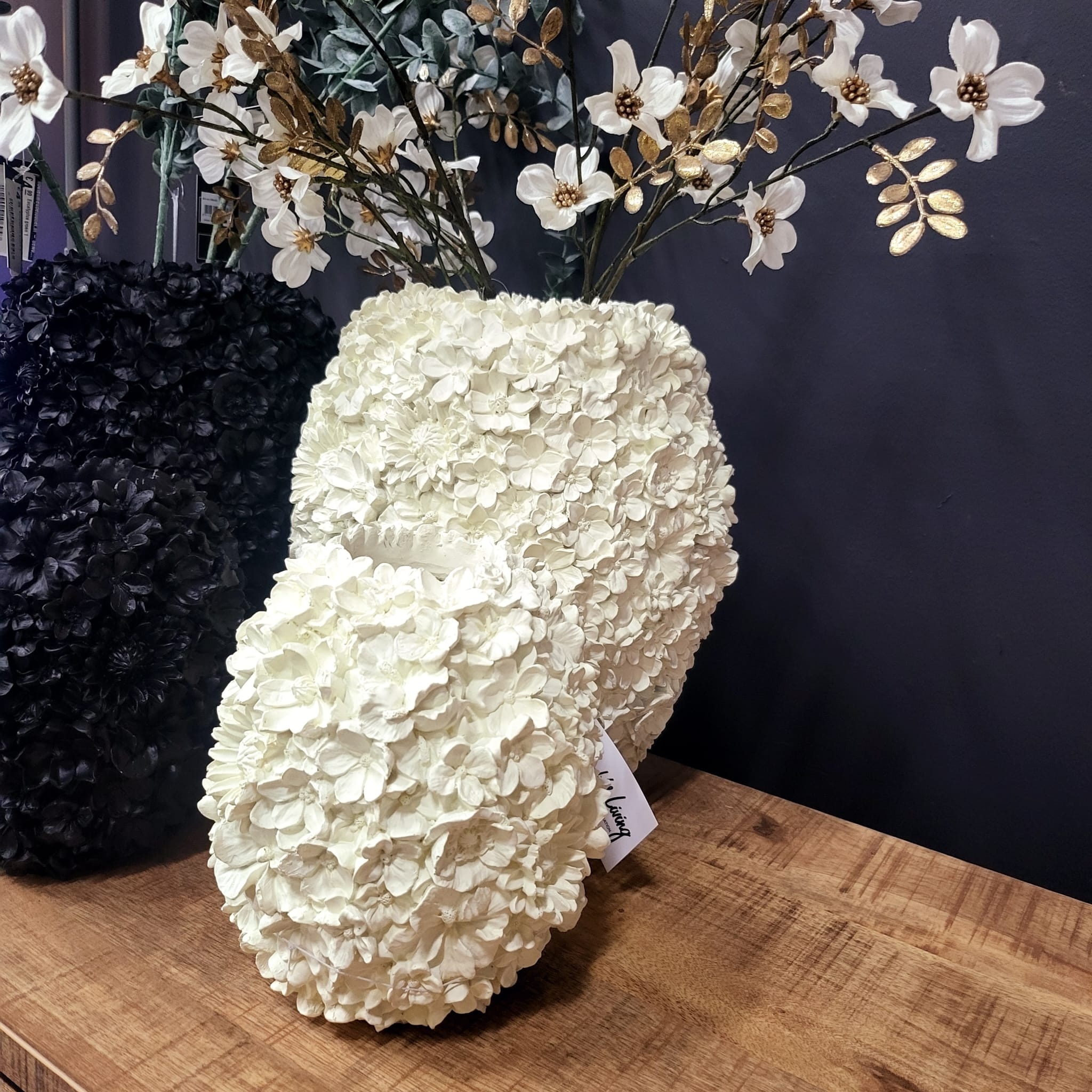 De VIOLETA deco vaas van Light & Living is een echte blikvanger voor ieder interieur. Deze elegante vaas heeft een unieke, handgemaakte bloemenstructuur en is uitgevoerd in een zachte mat crèmekleur. Dankzij het verfijnde reliëf en de organische vormgeving voegt de vaas direct sfeer en luxe toe aan je woonruimte.