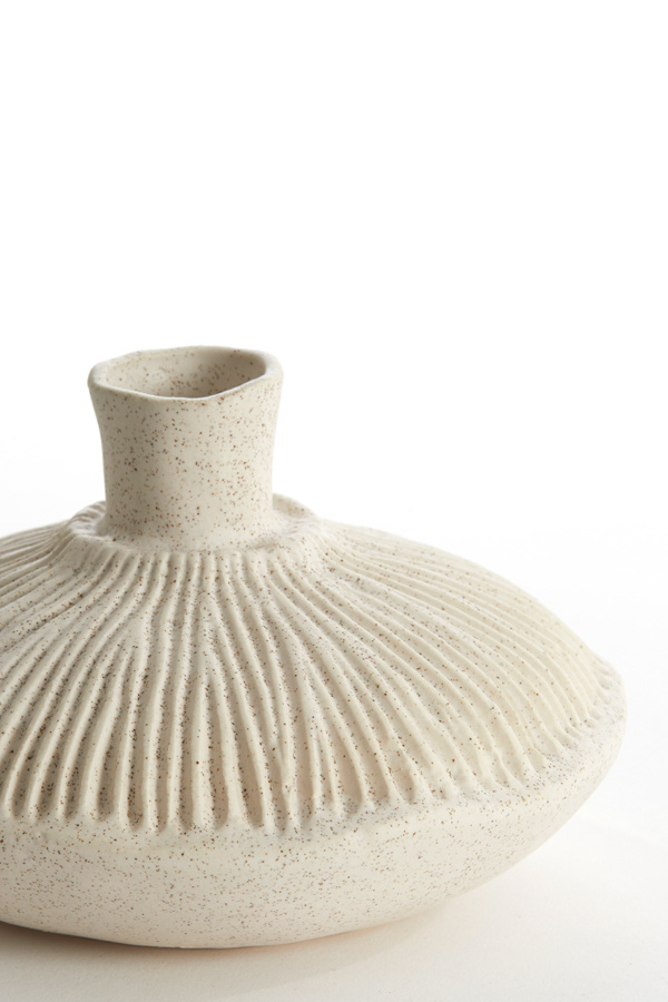 Hier zijn de specifieke details van de Vaas deco Ø19x11 cm NEIRA crème: