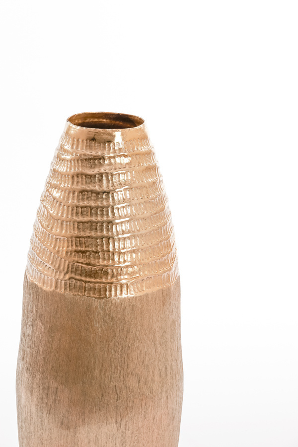 De metalen vaas heeft een mooie bewerking aan de bovenzijde wat de vaas extra chique maakt. Deze vaas steelt echt de show.