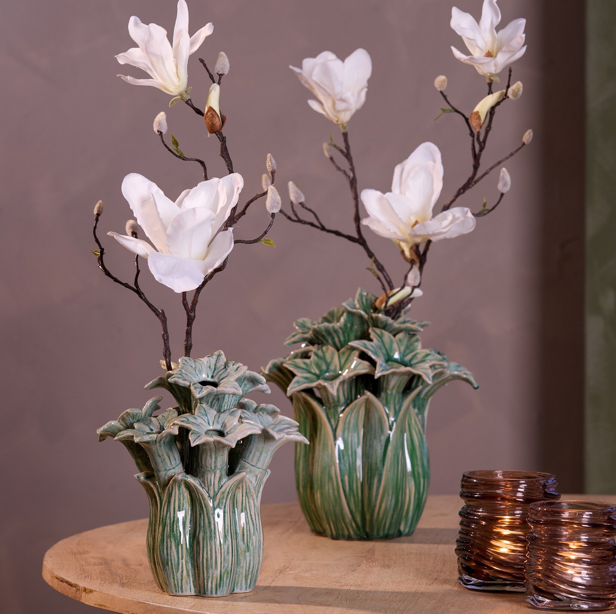 De Sampaga decoratieve vaas van Light & Living onderscheidt zich door haar bijzondere vormgeving. De vaas is opgebouwd uit meerdere bloemachtige vormen die samen een speels en artistiek geheel vormen. Hierdoor is deze vaas niet alleen functioneel, maar vooral een decoratief statement.
