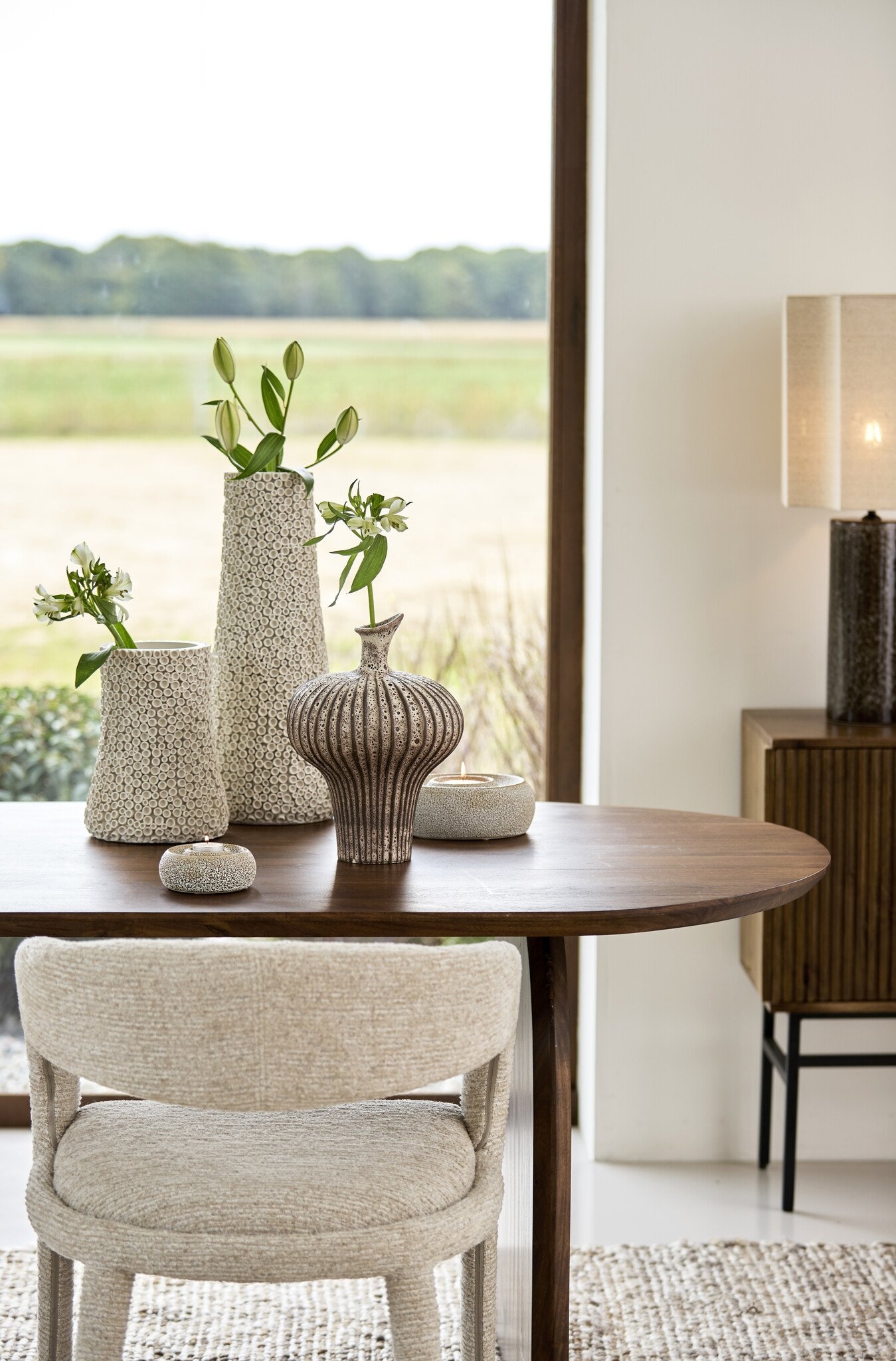 Ook zonder inhoud is deze vaas een sculpturaal object dat direct sfeer toevoegt.