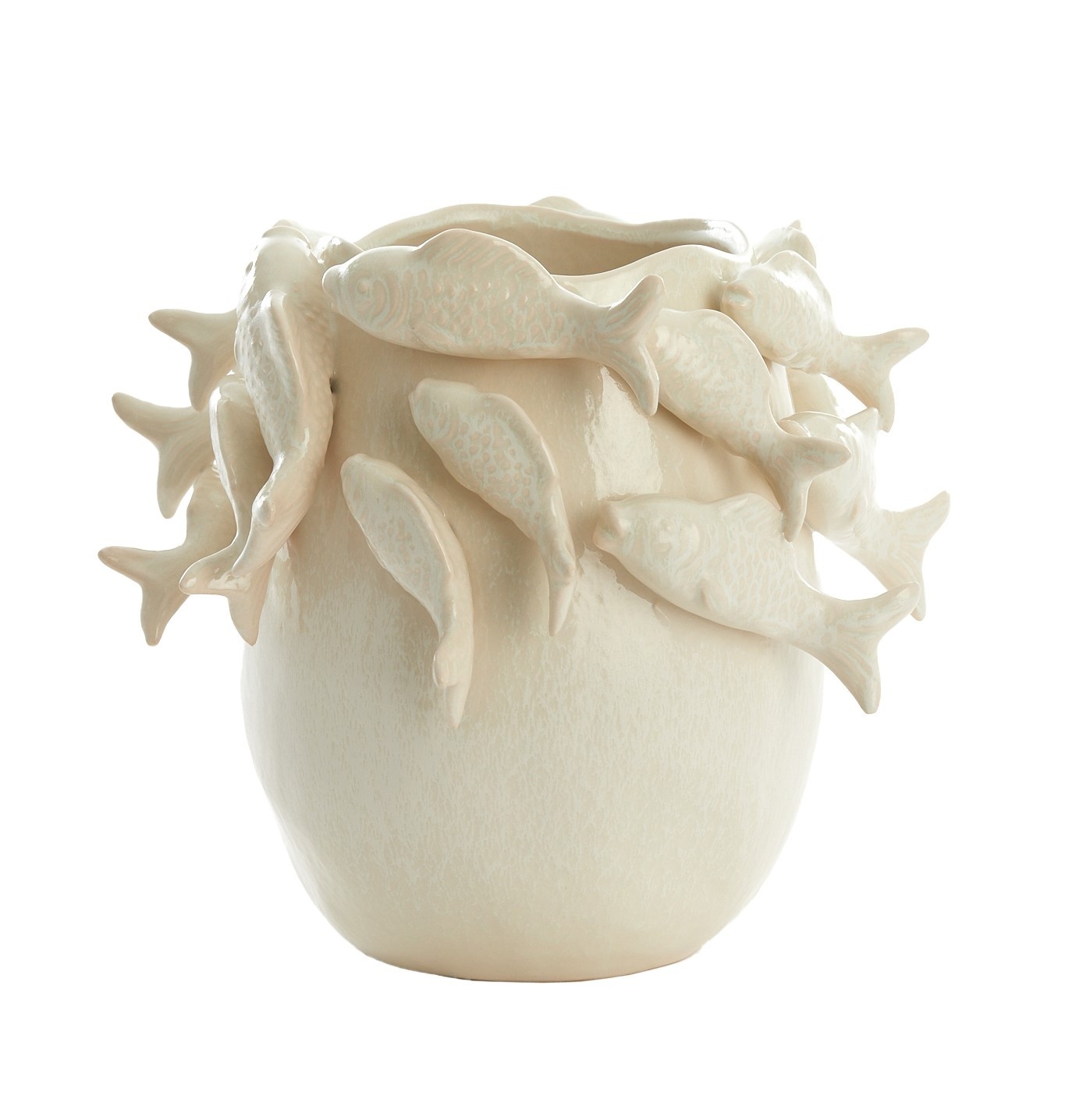 Vaas Fish is een unieke vaas van Light&living en gemaakt van keramiek in de kleur crème. Geef deze vaas een plekje in jouw interieur en zet er bijvoorbeeld droogbloemen en pluimen in. Je kunt er natuurlijk ook kunstbloemen of echte bloemen in zetten. Als je er echte bloemen in zet, controleer dan eerst of deze vaas van keramiek 100% waterdicht is.