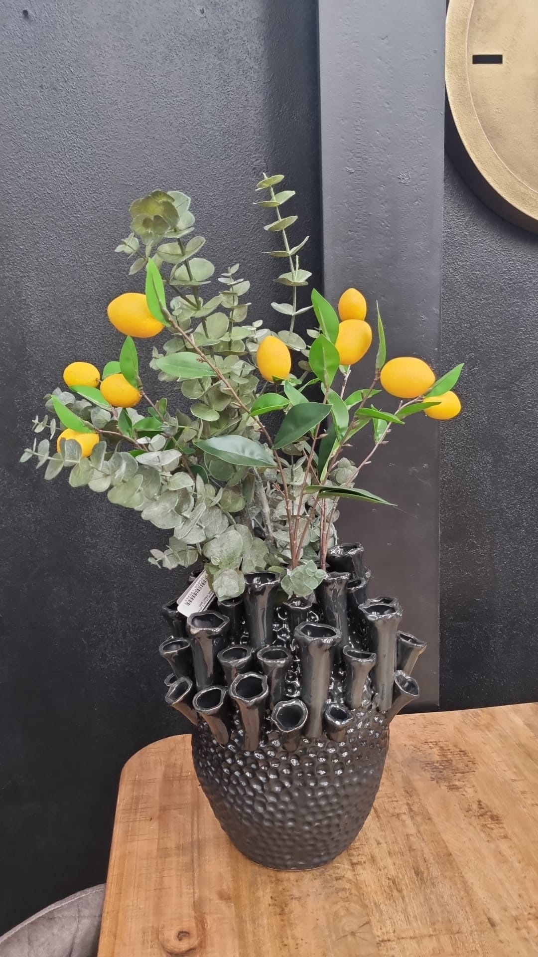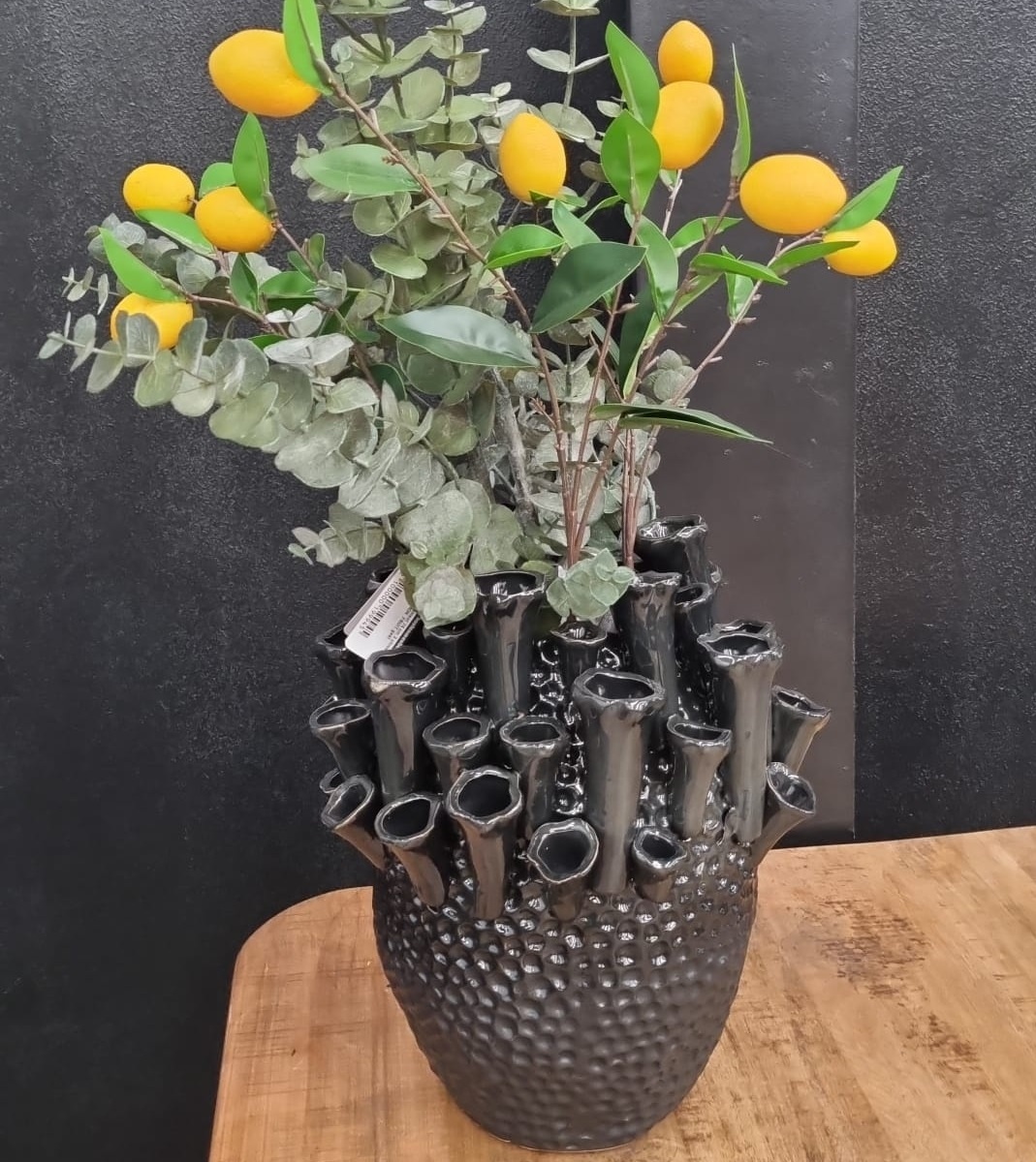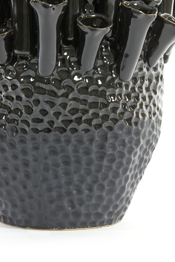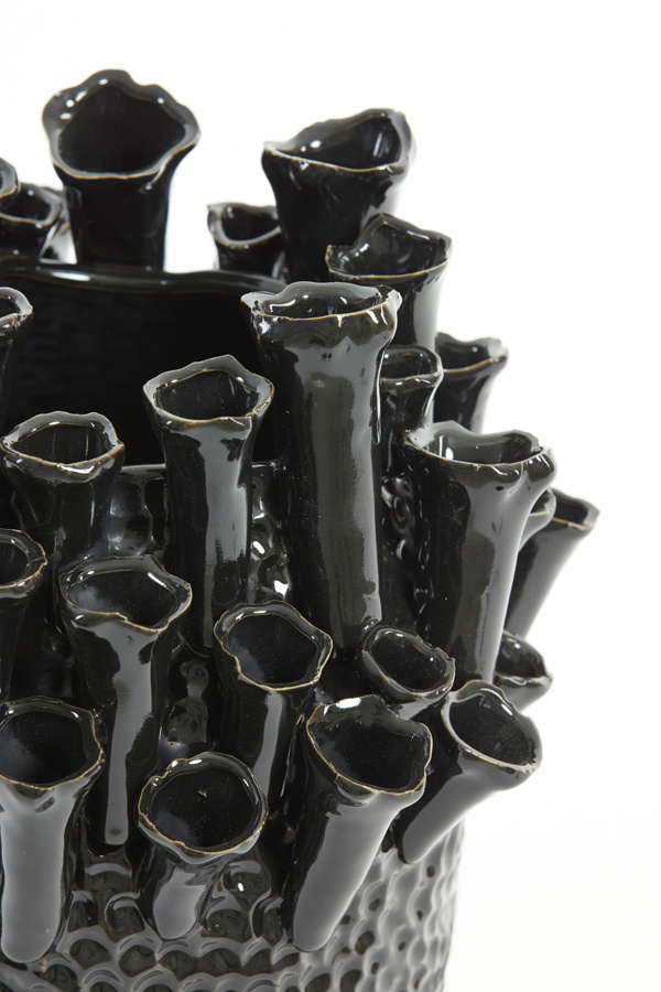 De vaas Kyral heeft een prachtige vorm waardoor (kunst)bloemen of pluimen goed tot zijn recht komen. Dit product kan je gebruiken als echte eye-catcher in elke ruimte! Deze vaas is gemaakt van Keramiek en heeft een zwarte kleur.