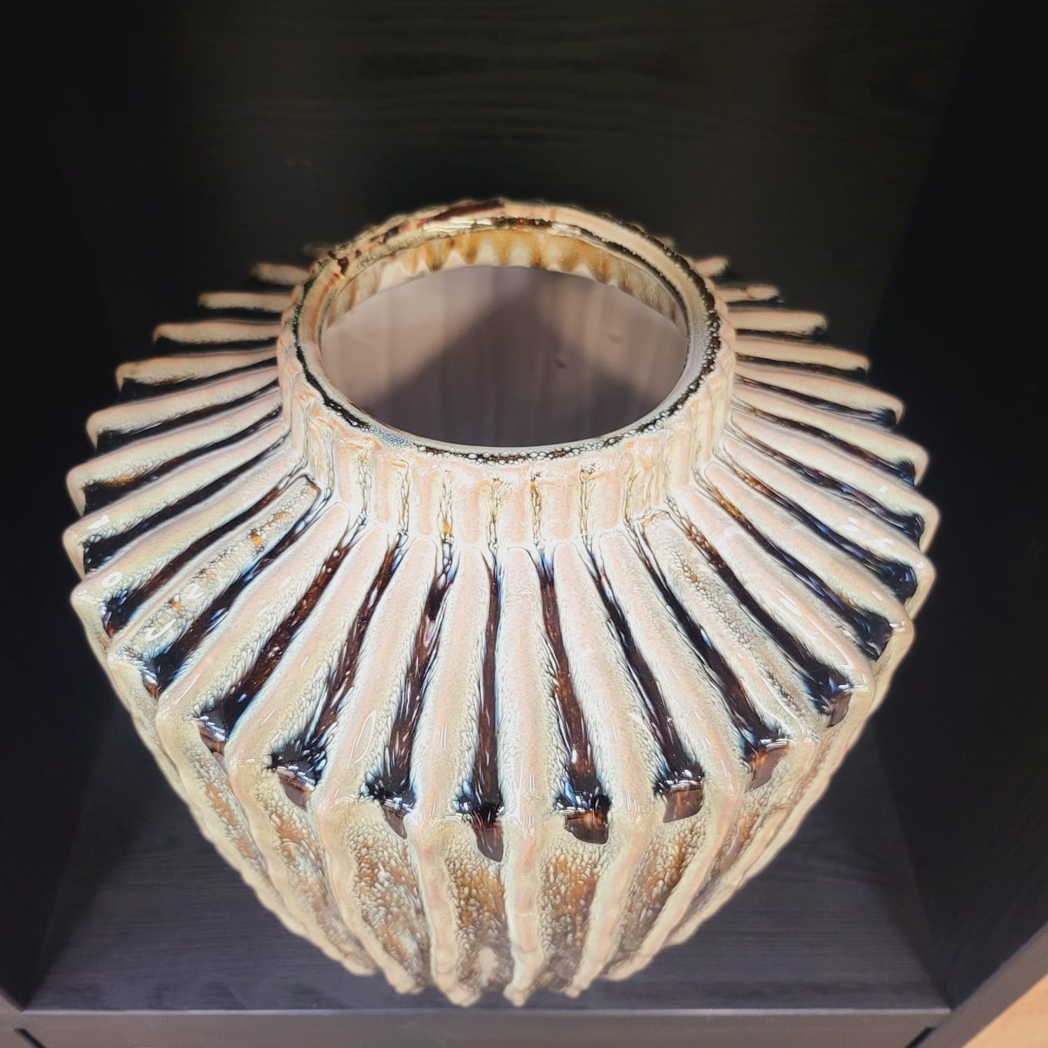 Ontdek de rust en verfijning van de TALEA vaas olijfgroen-crème – exclusief bij De Woon Winkel.