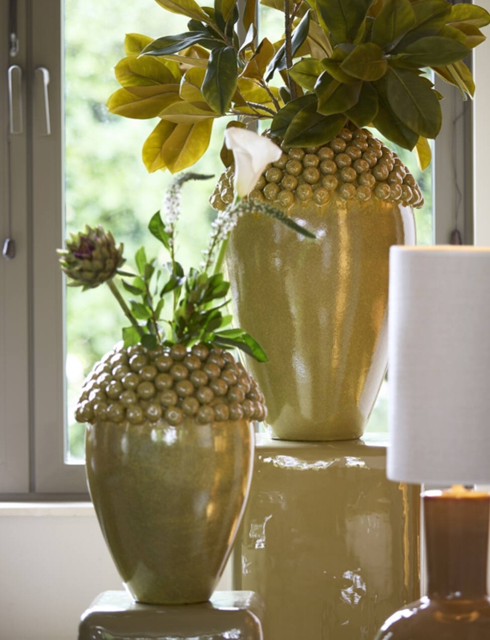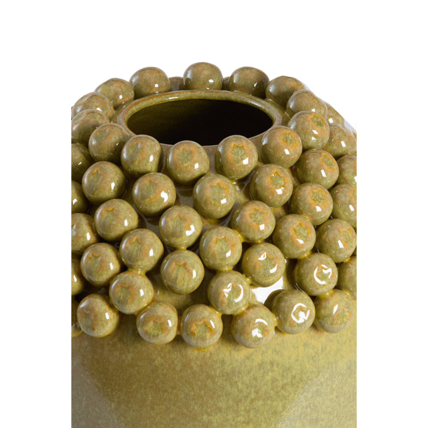 Geef je interieur een warme, natuurlijke en artistieke touch met de LOVRO vaas in olijfgroen-bruin keramiek. Deze opvallende decoratieve vaas is een echte eyecatcher dankzij het unieke ontwerp met ronde keramische bollen rondom de hals en de diepe, glanzende olijfgroen-bruine kleur. De LOVRO vaas is verkrijgbaar in twee formaten – Ø32 x 43,5 cm en Ø39,5 x 57 cm – en past perfect in zowel moderne, landelijke als klassieke interieurs.