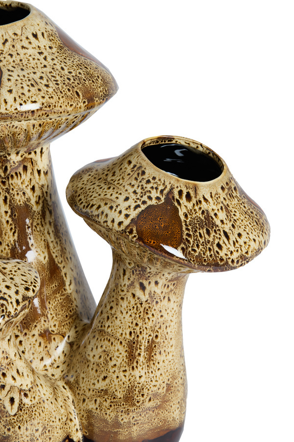 Deze decoratieve paddestoelvaas van Light & Living is een echte blikvanger. Het ontwerp bestaat uit meerdere paddestoelvormen die samen één sculpturaal geheel vormen. De combinatie van donkerbruin en crème geeft de vaas een warme, natuurlijke uitstraling met een artistieke twist.