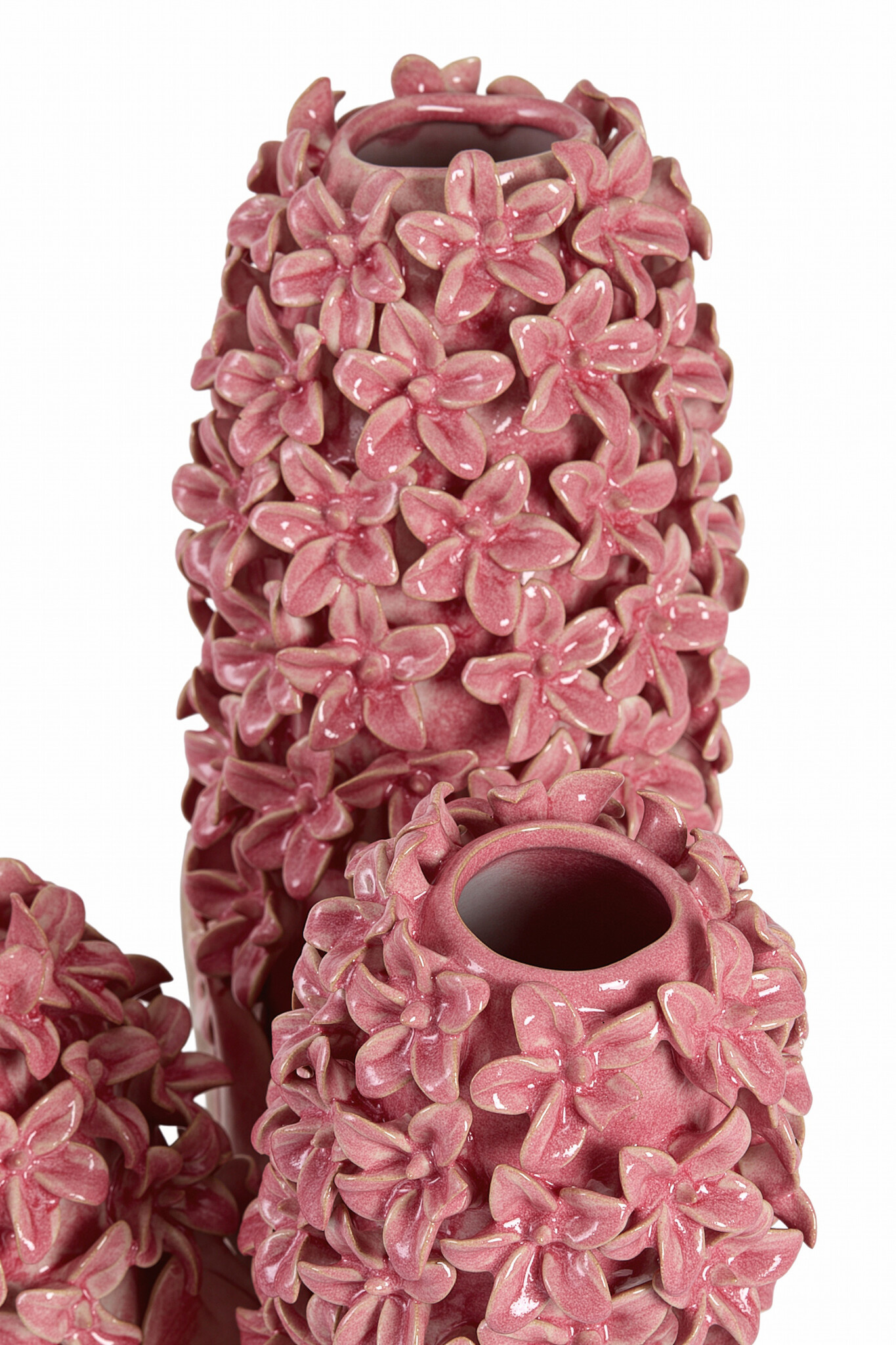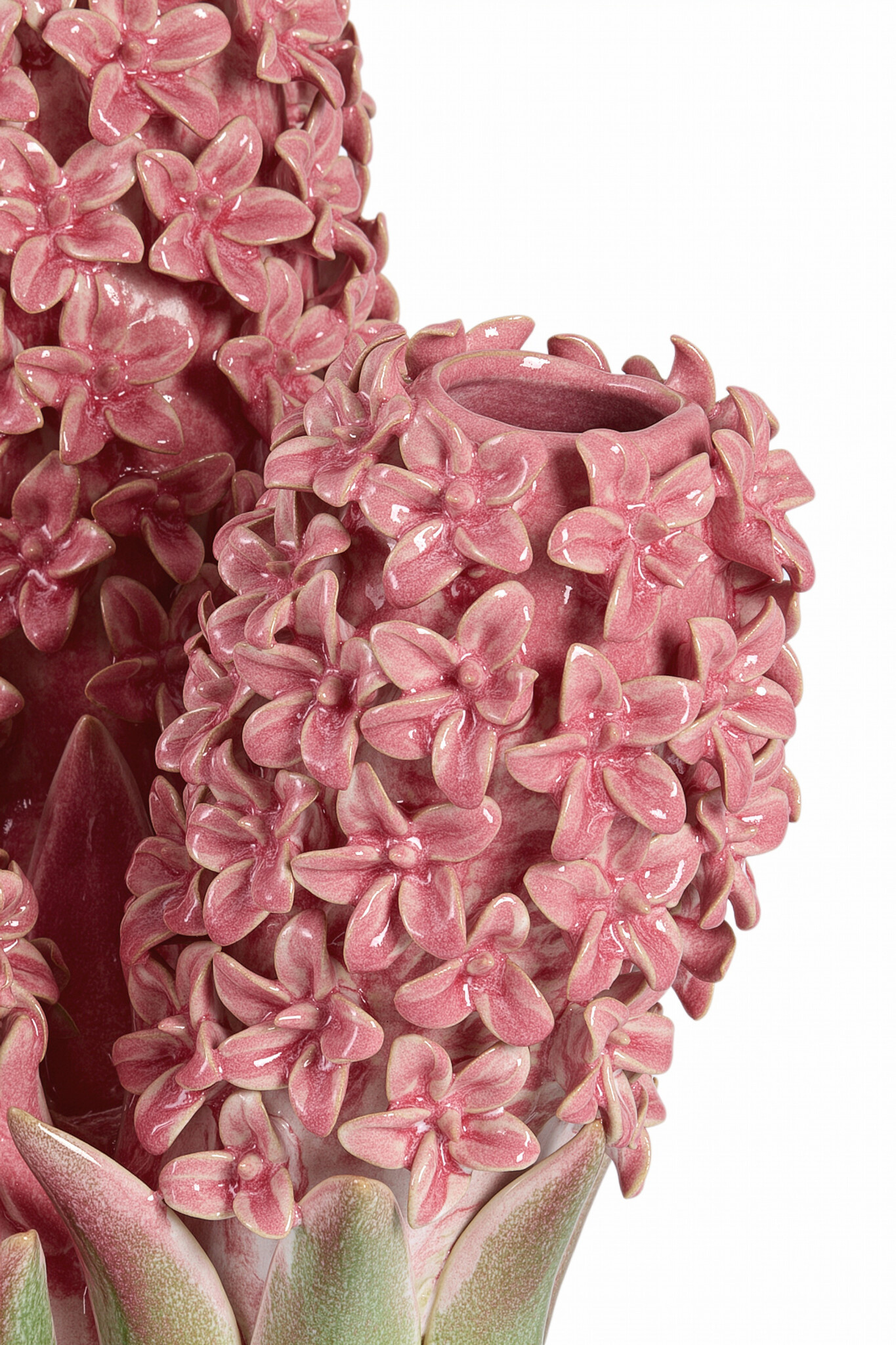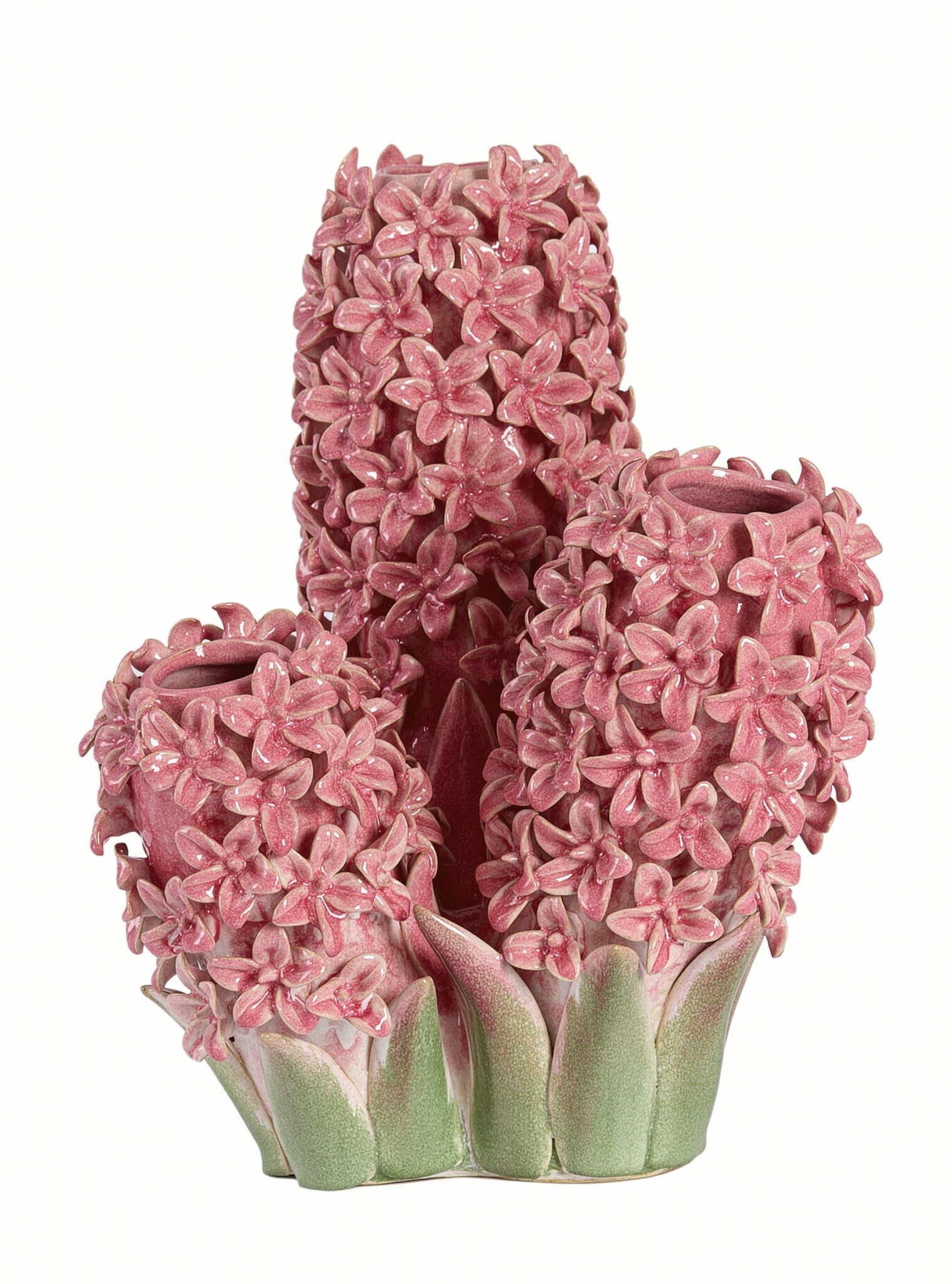 De Vaas deco FLOWER keramiek roze-groen is een uitgesproken en decoratieve eyecatcher met een artistieke uitstraling. Deze bijzondere vaas is rijkelijk versierd met bloemvormige details en uitgevoerd in een harmonieuze combinatie van blauw- en groentinten. De glanzende keramische afwerking en het reliëf van de bloemen geven de vaas een luxe, handgemaakte look.