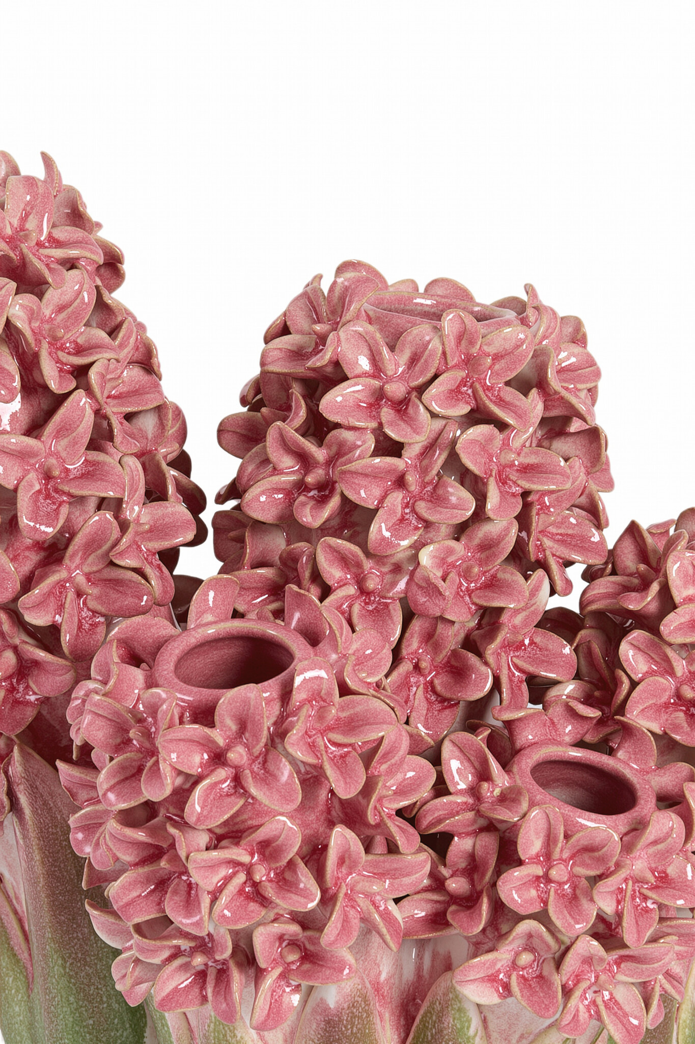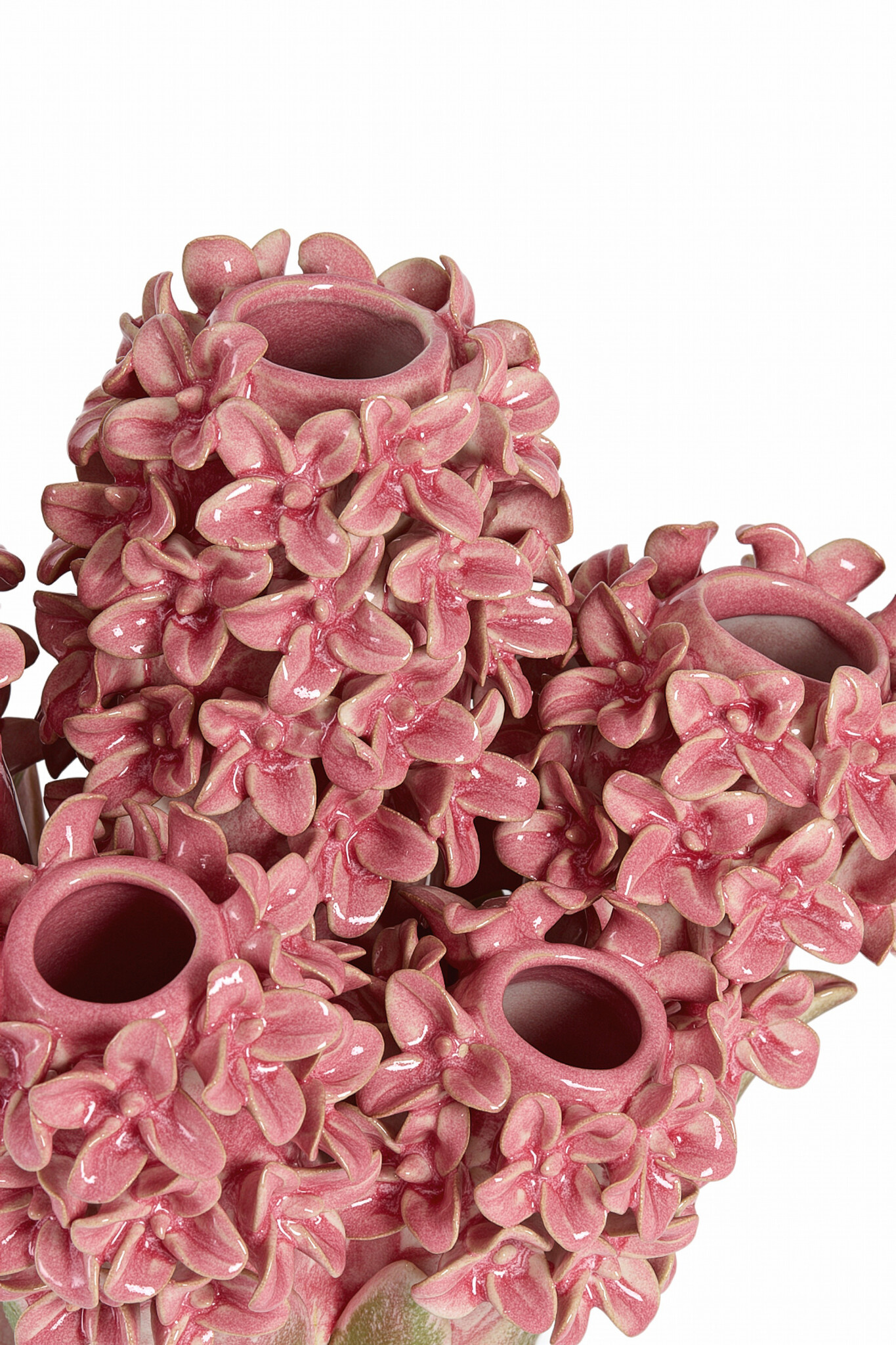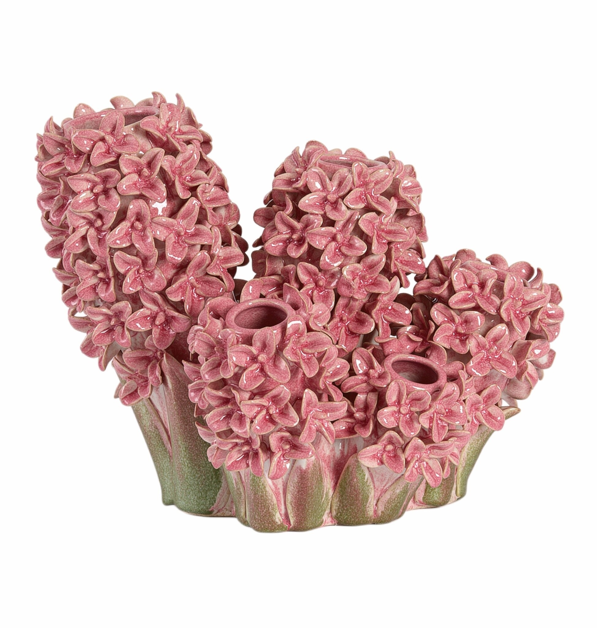 De Vaas deco FLOWER keramiek roze-groen is een uitgesproken en decoratieve eyecatcher met een artistieke uitstraling. Deze bijzondere vaas is rijkelijk versierd met bloemvormige details en uitgevoerd in een harmonieuze combinatie van blauw- en groentinten. De glanzende keramische afwerking en het reliëf van de bloemen geven de vaas een luxe, handgemaakte look.