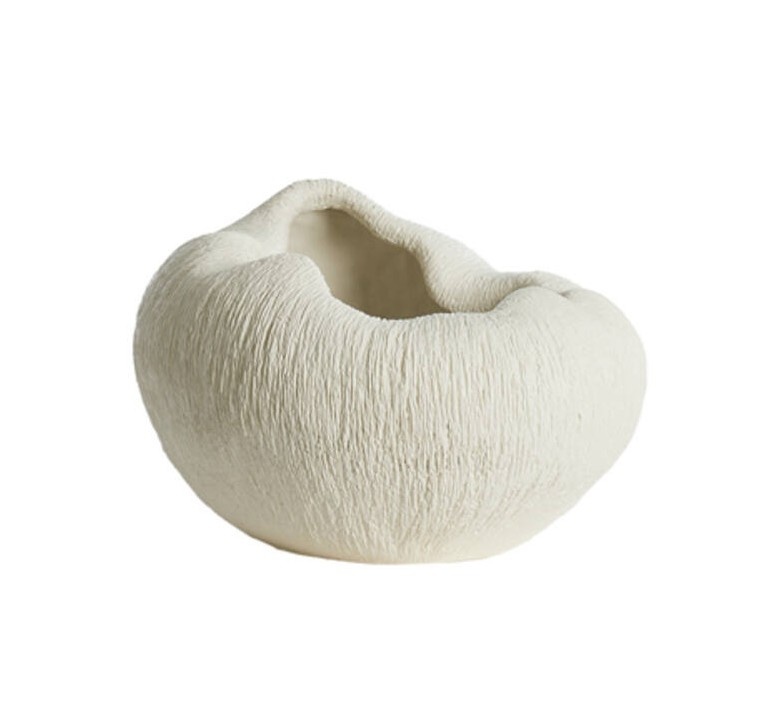 Met afmetingen van 39,5x32x24 cm is deze variant ideaal voor op een dressoir, vensterbank of als onderdeel van een decoratief stilleven. De natuurlijke crème tint en unieke vorm passen perfect binnen woonstijlen zoals Japandi, Scandi, Modern Organic of Boho Chic.