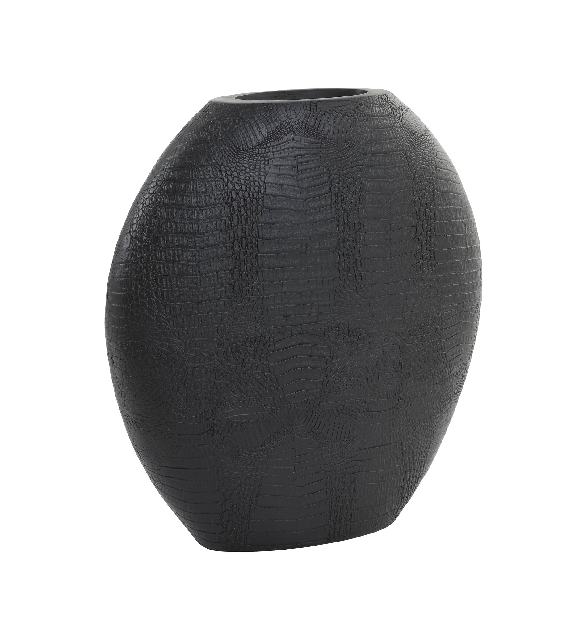 Maak van je interieur een stijlvol geheel met de deco vaas SKELD in mat zwart van Light & Living. Deze elegante vaas is voorzien van een subtiel reliëf met een krokodillenhuid-achtige structuur, wat zorgt voor een luxe en eigentijdse uitstraling. De matte zwarte kleur geeft rust en karakter, en maakt SKELD tot een veelzijdig item voor ieder interieur.
