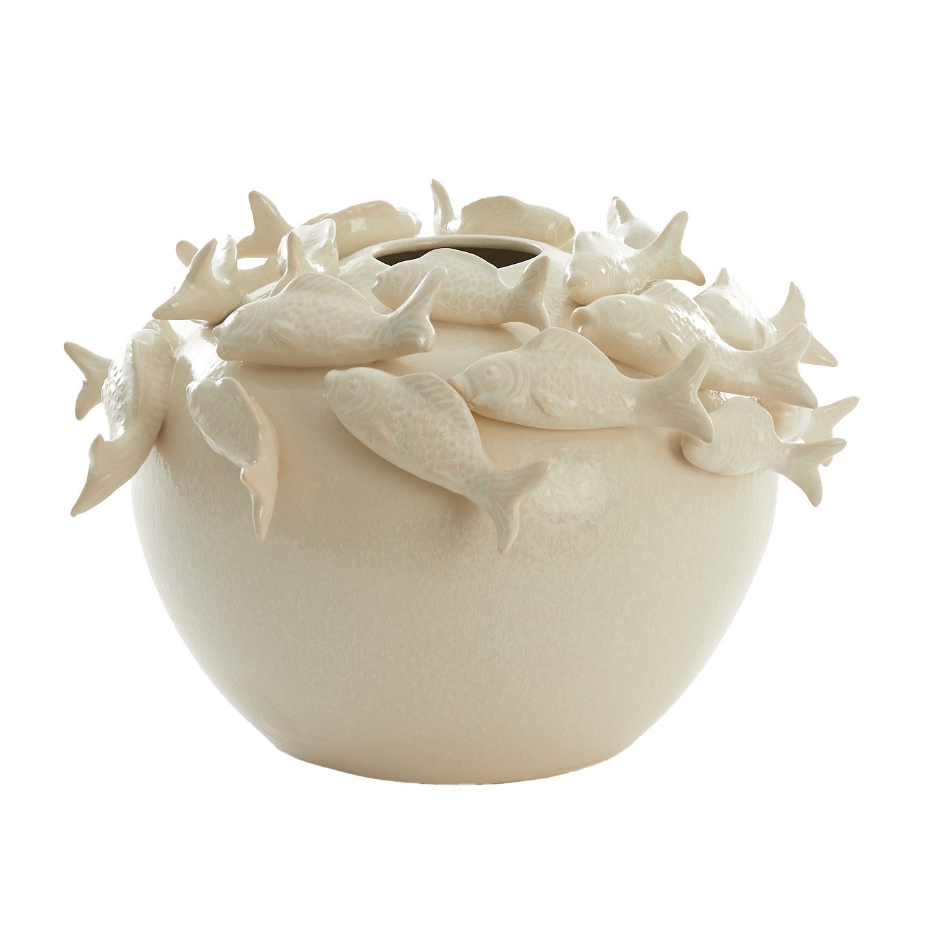 Vaas Fish is een unieke vaas van Light&living en gemaakt van keramiek in de kleur crème. Geef deze vaas een plekje in jouw interieur en zet er bijvoorbeeld droogbloemen en pluimen in. Je kunt er natuurlijk ook kunstbloemen of echte bloemen in zetten. Als je er echte bloemen in zet, controleer dan eerst of deze vaas van keramiek 100% waterdicht is.