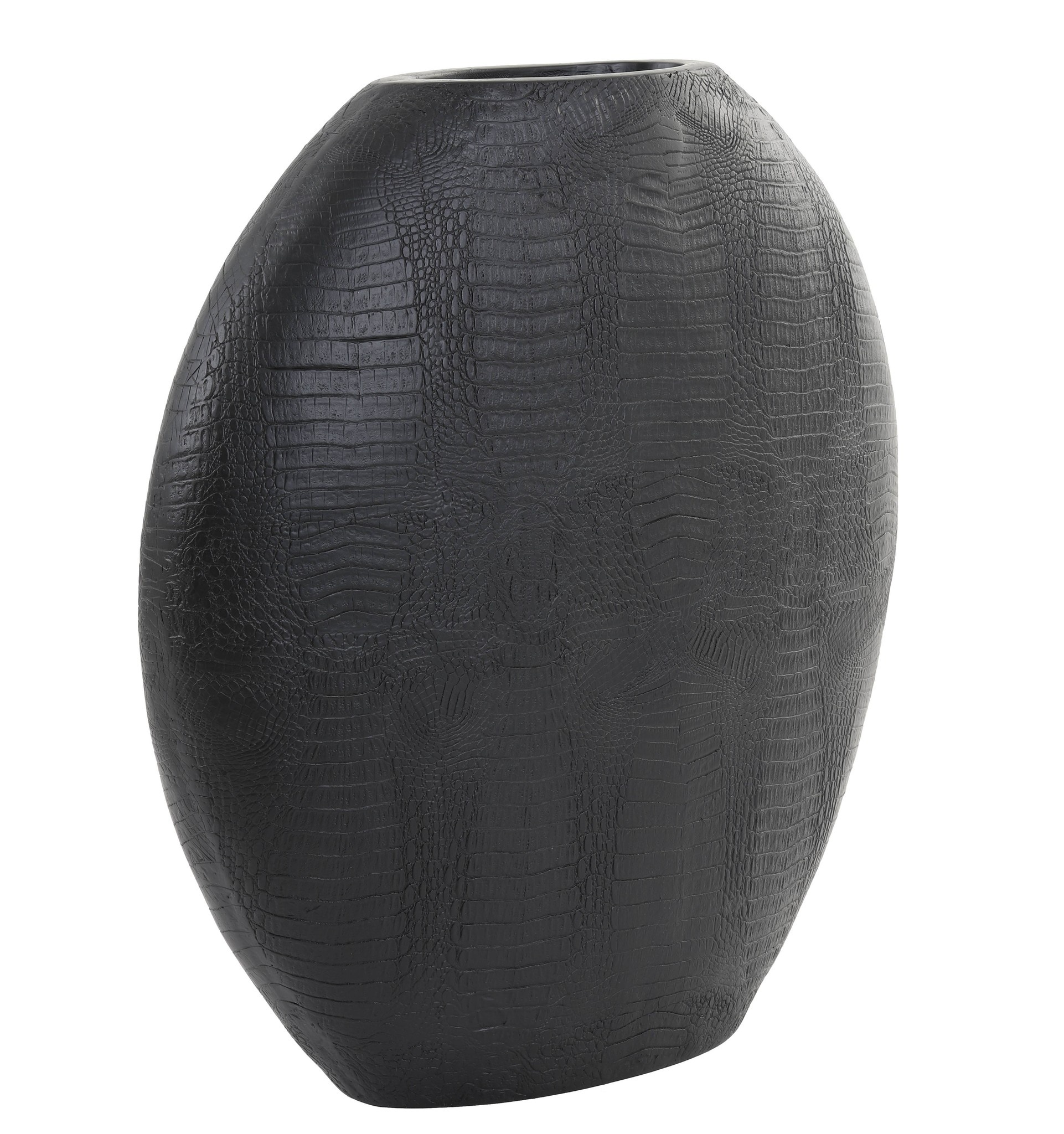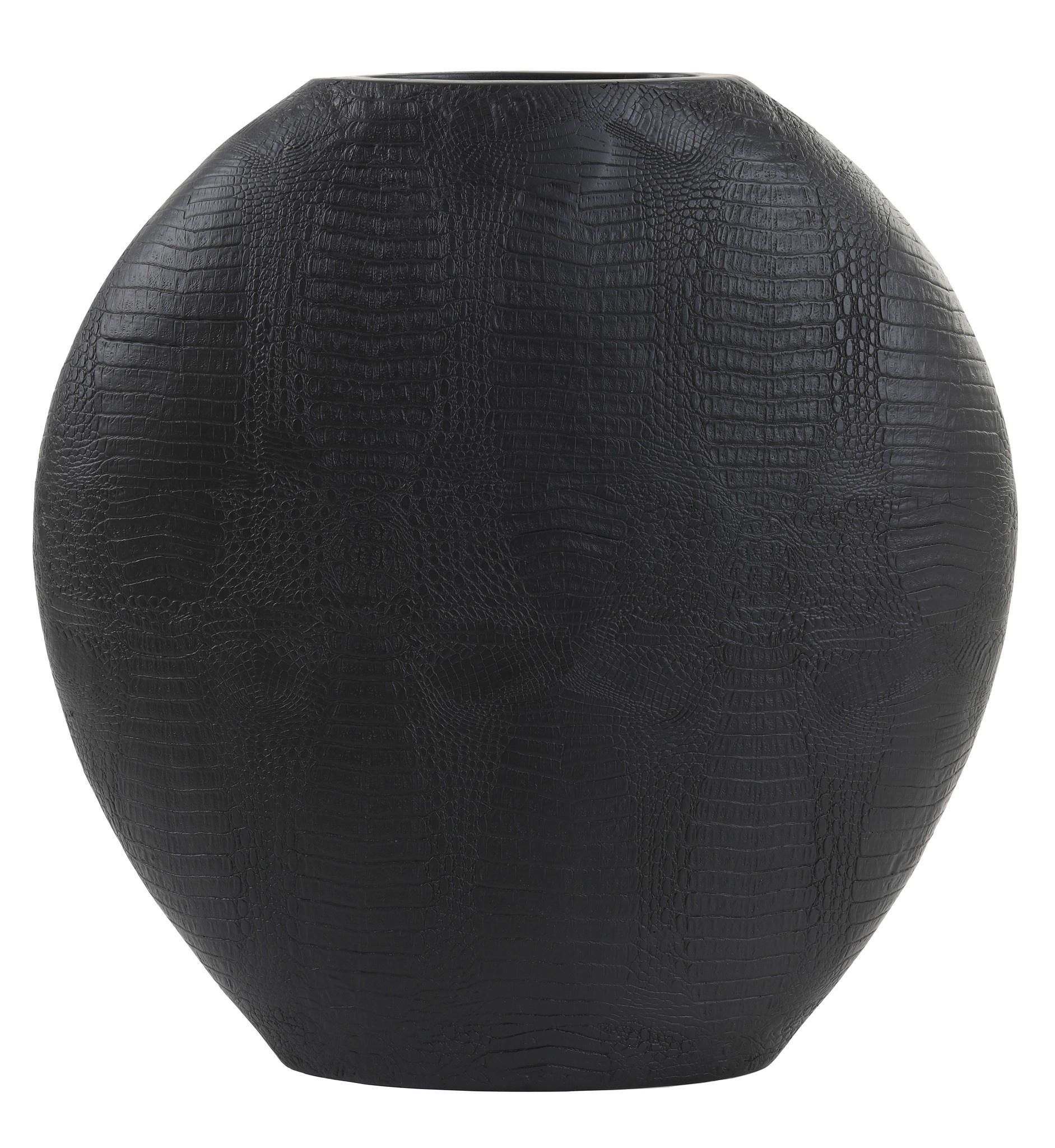 Maak van je interieur een stijlvol geheel met de deco vaas SKELD in mat zwart van Light & Living. Deze elegante vaas is voorzien van een subtiel reliëf met een krokodillenhuid-achtige structuur, wat zorgt voor een luxe en eigentijdse uitstraling. De matte zwarte kleur geeft rust en karakter, en maakt SKELD tot een veelzijdig item voor ieder interieur.
