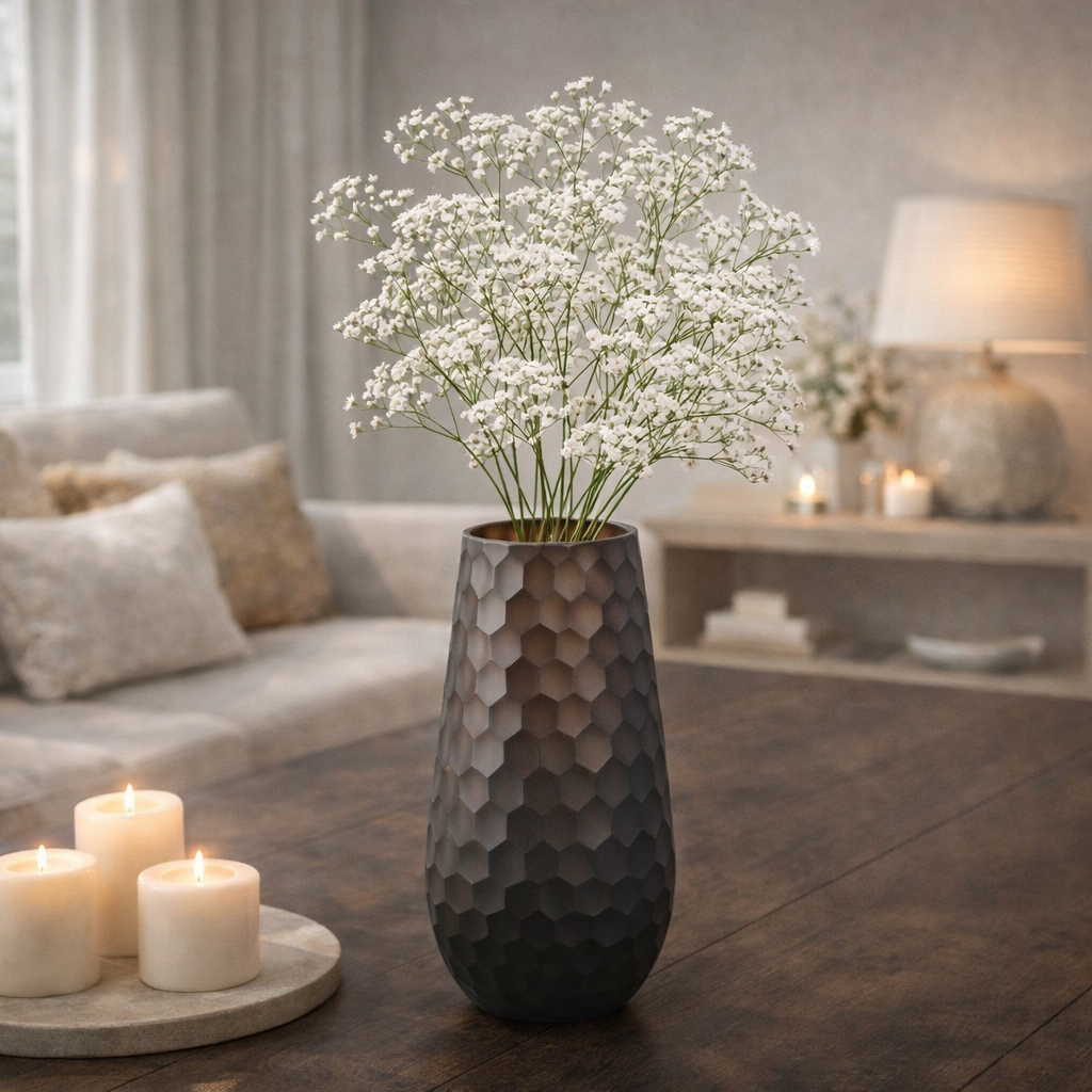 De diepe bruine tint maakt deze vaas bijzonder geschikt voor warme en luxe interieurs. Ze past perfect binnen woonstijlen zoals hotel chic, modern, industrieel en minimalistisch en laat zich mooi combineren met hout, metaal en natuursteen.