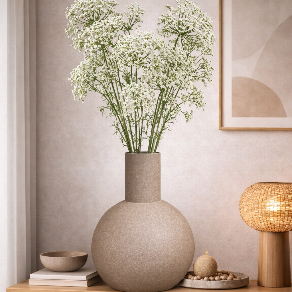 Deze metalen vaas voegt een stoere en stijlvolle touch toe aan je woonassortiment. Met zijn unieke design en natuurlijke, ruwe afwerking is deze vaas een echt statement piece dat de aandacht trekt. Perfect voor het presenteren van gedroogde takken of als op zichzelf staande decoratie, brengt het een vleugje organische elegantie in elke ruimte. Het robuuste materiaal en opvallende ontwerp passen prachtig bij zowel moderne als rustieke interieurs. Een tijdloos decoratief item dat kracht en verfijning uitstraalt.