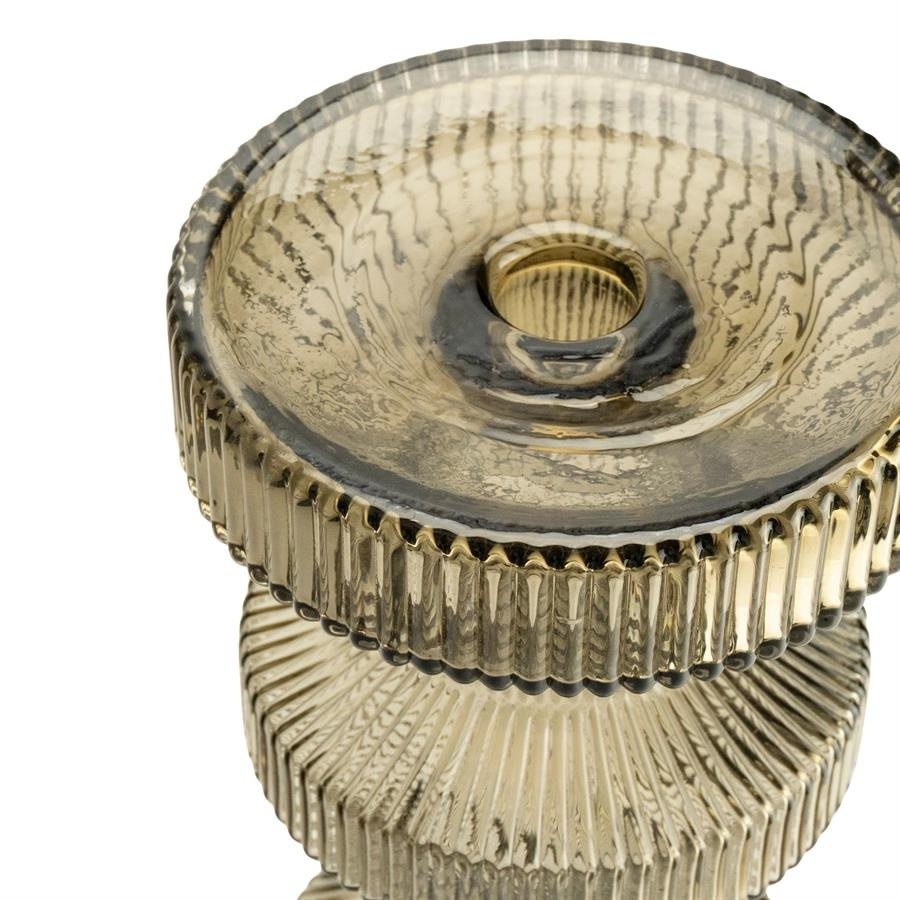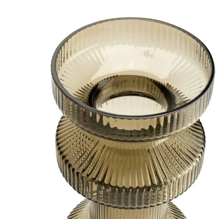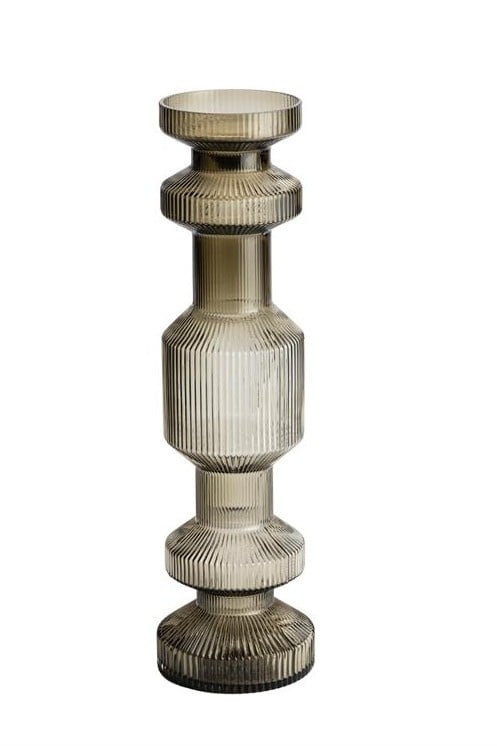 Het geribbelde glas in een warme bruine tint zorgt voor een luxe uitstraling en een prachtig lichtspel. Met een hoogte van 46,5 cm is deze Ara een echte eyecatcher die direct opvalt op een dressoir, tafel of in een open kast.