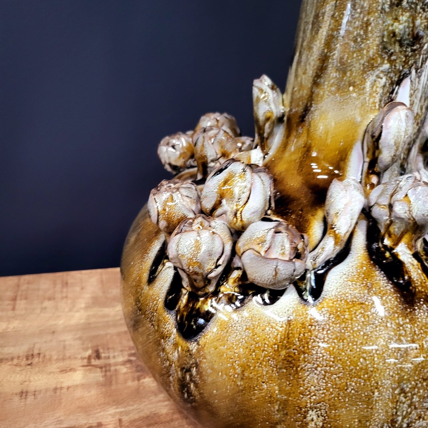 Met haar royale afmetingen van 52 cm hoog en 34 cm breed, trekt deze vaas moeiteloos de aandacht in elke ruimte. Plaats haar solo op een tafel, dressoir of console, of combineer met andere aardetinten voor een stijlvol geheel.