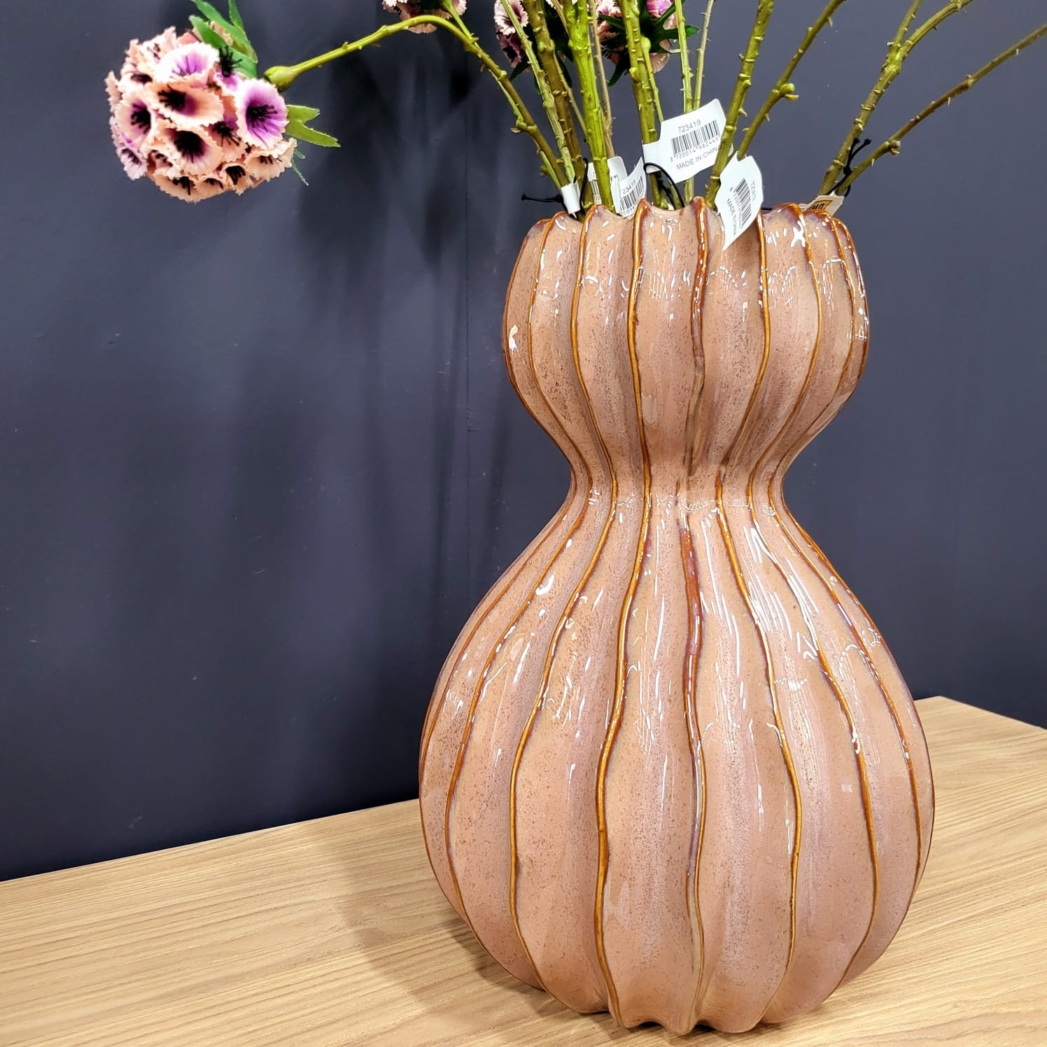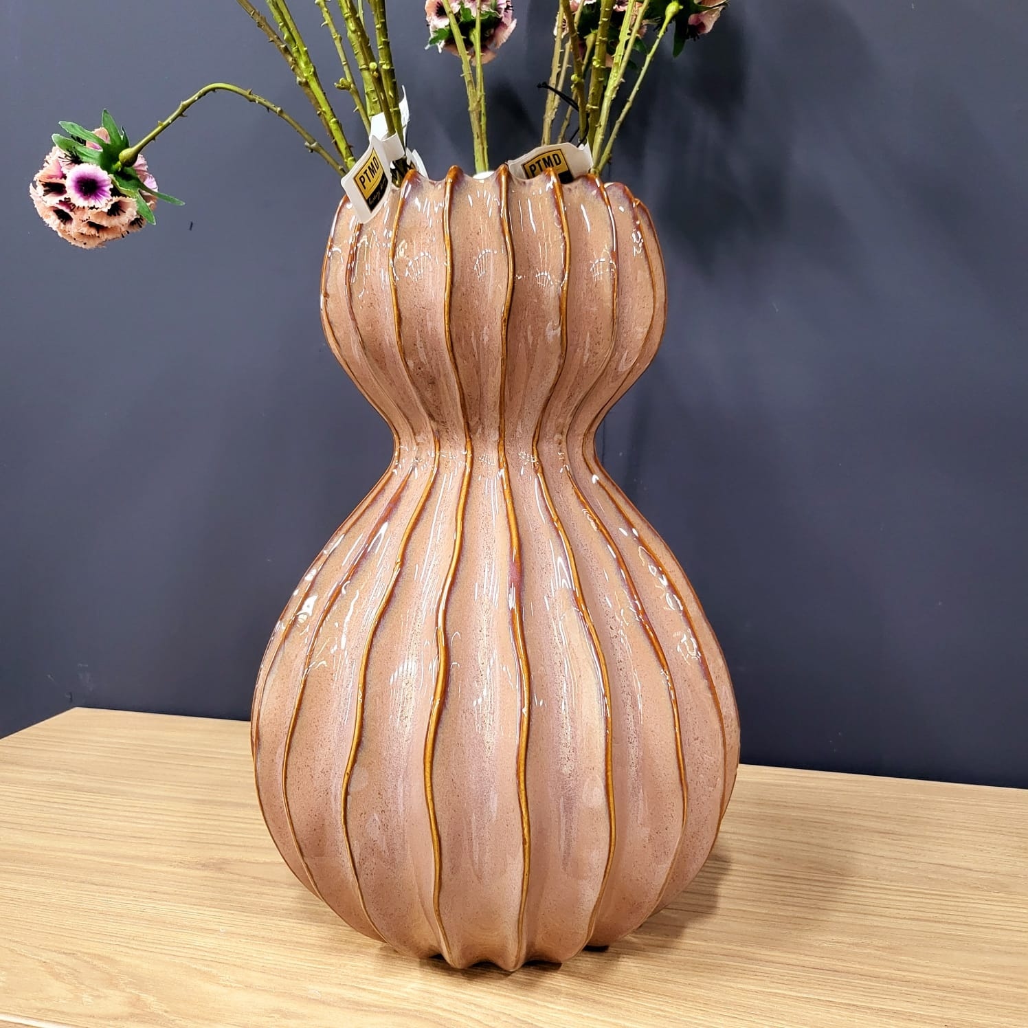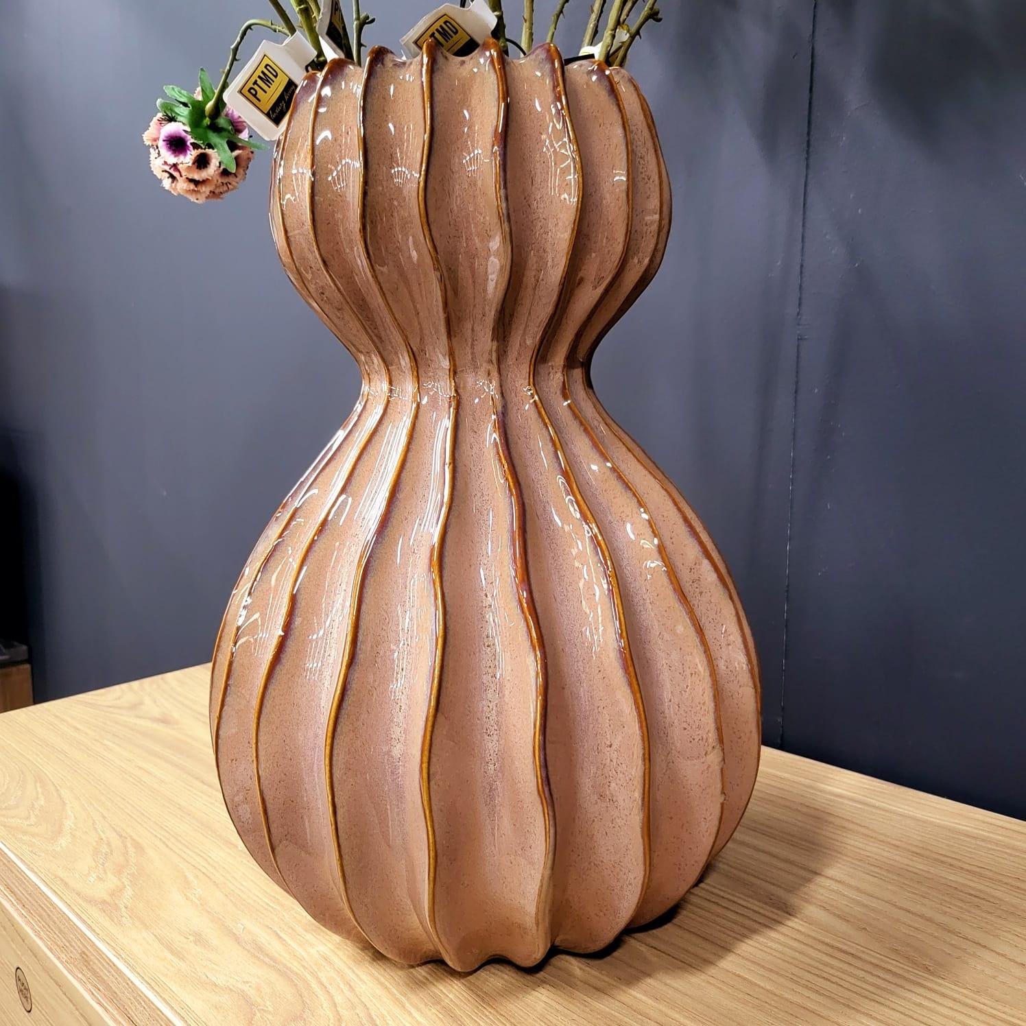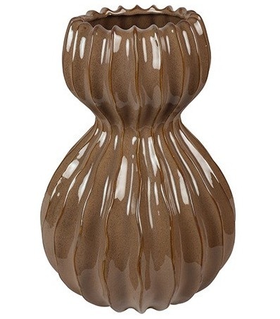 De warme bruine kleur met glanzende glazuurlaag geeft de vaas een chique en stijlvolle uitstraling. Dankzij de neutrale tint is deze vaas eenvoudig te combineren met andere kleuren en materialen, zoals hout, linnen of zwart metaal.