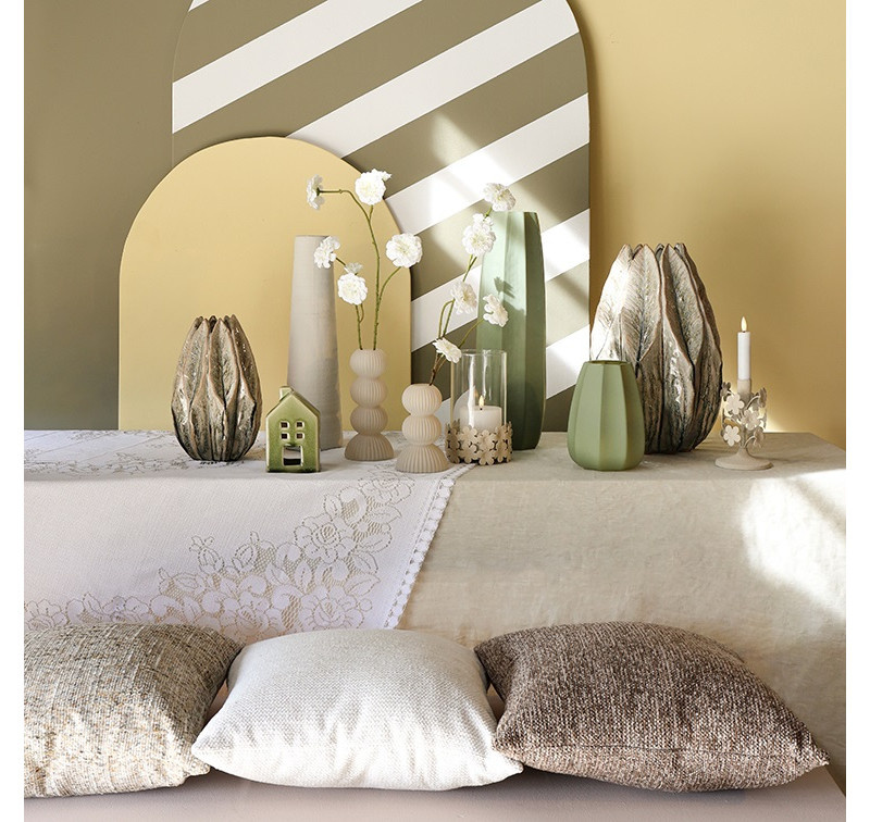 Of je nu een modern, botanisch of klassiek interieur hebt – deze vaas voelt zich overal thuis. Zet hem op een console, bijzettafel of dressoir als los decoratieobject, of vul hem met enkele lange takken of kunstbloemen voor een nog krachtiger effect.