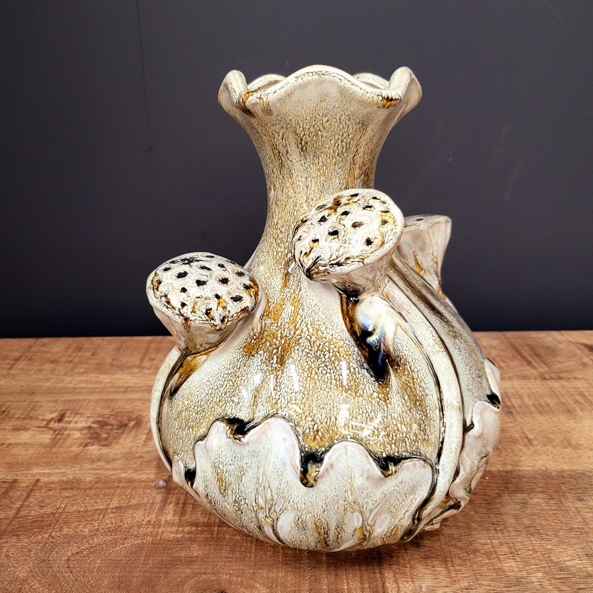 Vervaardigd uit stevig pottery (keramiek) heeft de vaas een robuuste, ambachtelijke uitstraling. Perfect als sierlijke vaas voor droogbloemen of decoratieve takken en een smaakvolle toevoeging aan diverse interieurstijlen zoals botanisch, landelijk, modern naturel of Japandi.