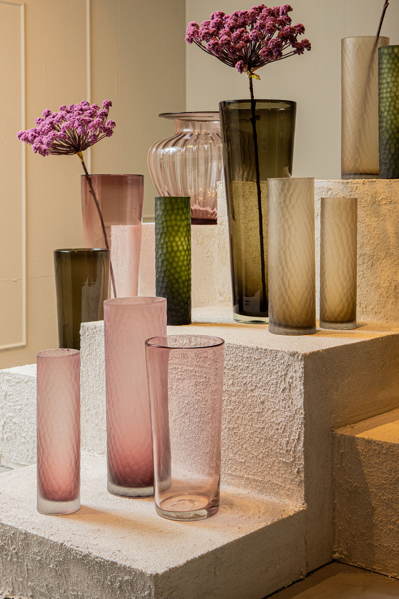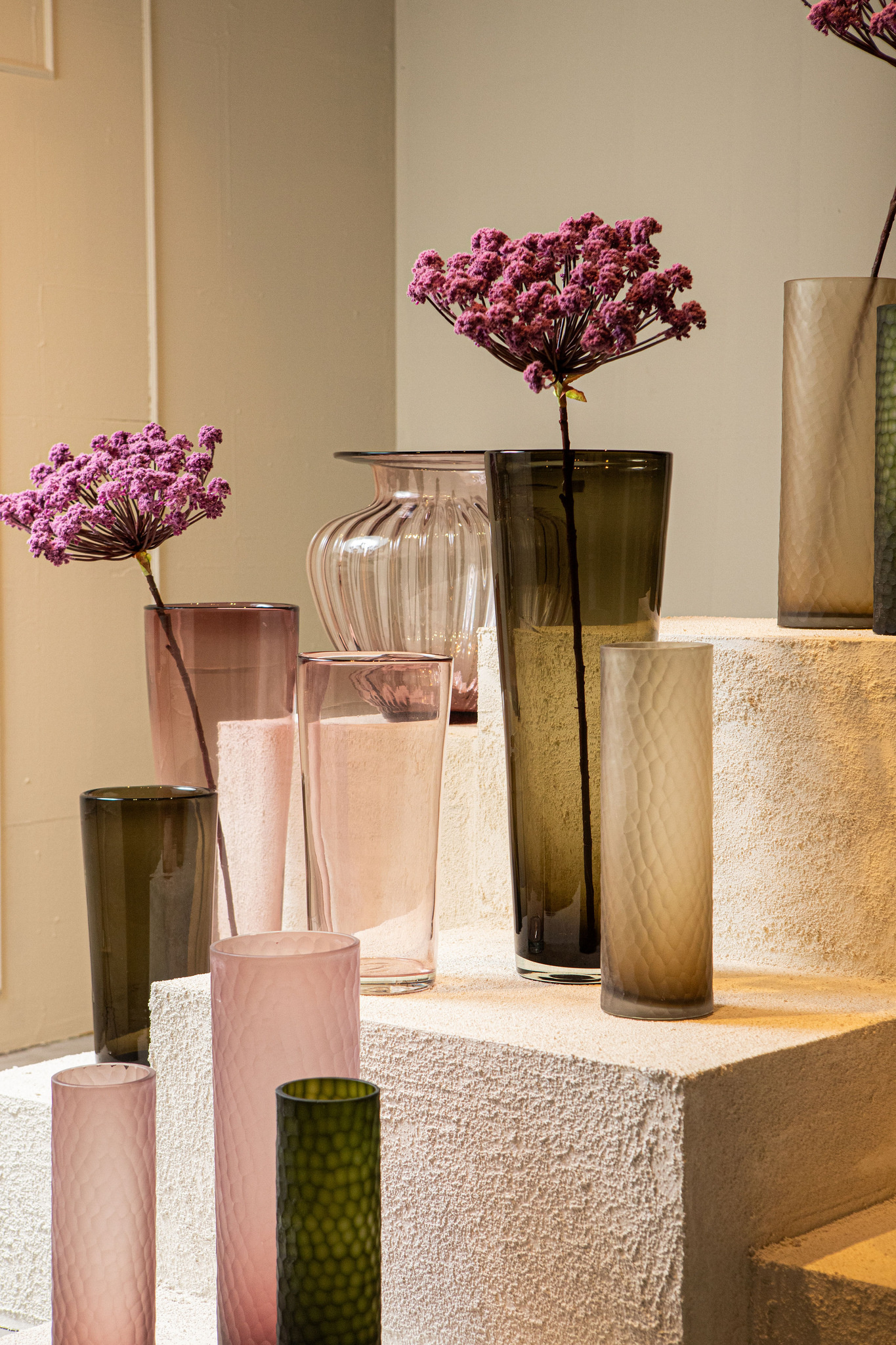 Het glas van de Marlisha vaas is voorzien van een subtiele verticale ribbelstructuur. In combinatie met de zachte roze kleur ontstaat een verfijnd spel van licht en reflectie, waardoor de vaas een warme en luxe uitstraling krijgt.