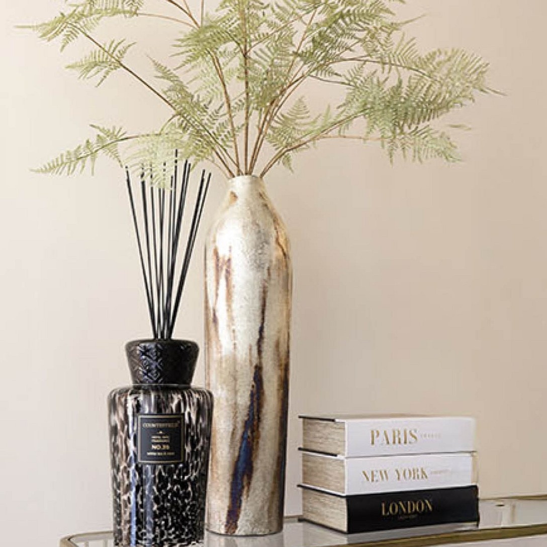 Deze hoge vaas van metaal brengt direct een stijlvolle uitstraling in je interieur. Het moderne design, gecombineerd met de elegante kleuren, maakt deze vaas een echte blikvanger. Perfect om een prachtig boeket bloemen in te presenteren of als op zichzelf staand decoratief stuk. De hoogwaardige afwerking en het duurzame materiaal zorgen ervoor dat deze vaas niet alleen stijlvol, maar ook praktisch is. Een vrolijke en eigentijdse toevoeging die het voorjaar in elke ruimte tot leven brengt.