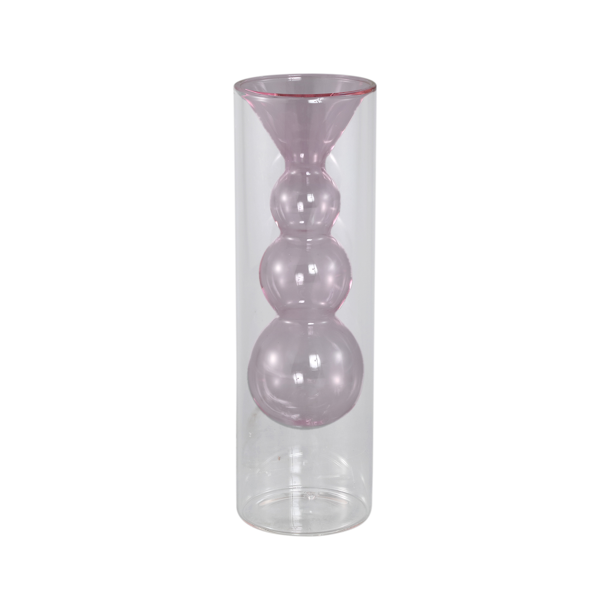De Vaas Yanna Roze met bolvormige binnenkant – groot van PTMD is een verfijnd decoratief object dat direct opvalt door zijn bijzondere vormgeving. De ronde, bolvormige binnenstructuur in roze contrasteert prachtig met de strakke, transparante buitenvorm van glas.