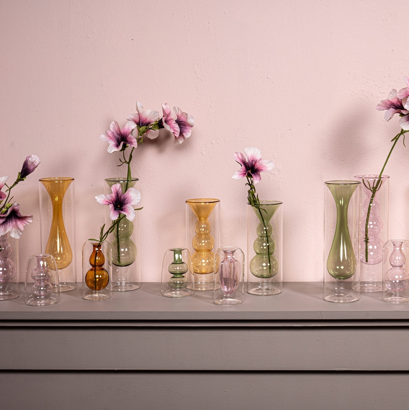De Yanna vaas met bolvormige binnenkant laat zich uitstekend combineren met andere Yanna vazen in verschillende vormen, kleuren en formaten. Door meerdere varianten samen te plaatsen creëer je een speels, harmonieus en modern geheel.