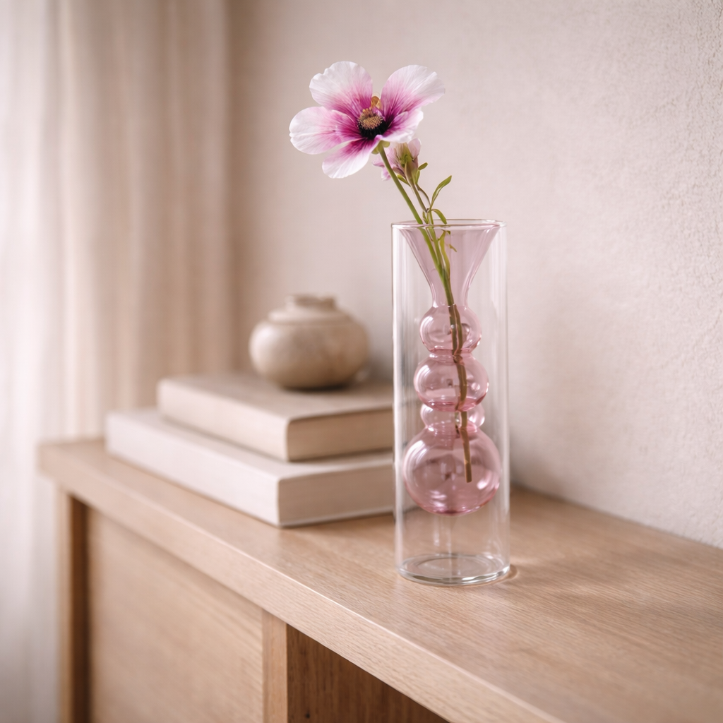 De Vaas Yanna Roze met bolvormige binnenkant is ideaal voor liefhebbers van moderne woonaccessoires met een artistieke en elegante uitstraling.