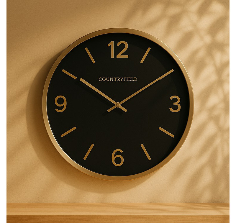 De grote diameter van 50 cm maakt deze wandklok ideaal als eyecatcher boven een dressoir, bank, in de keuken of zelfs in kantoorruimtes. De goudkleurige cijfers en wijzers steken prachtig af tegen de zwarte achtergrond, waardoor de tijd in één oogopslag duidelijk af te lezen is.