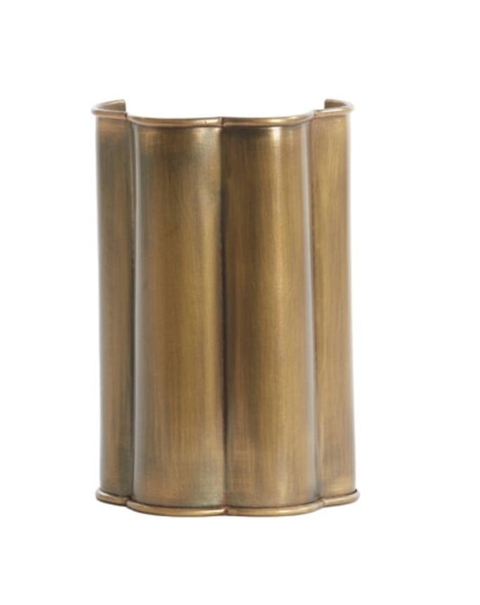 Decoreer uw woonkamer of slaapkamer met een vleugje speelse elegantie met de Fringe wandlamp metaal. Dit fascinerende stuk heeft een unieke bloemvorm gemaakt van prachtig antiek brons metaal, met een afmeting van 13,5×9,5×20,5cm.