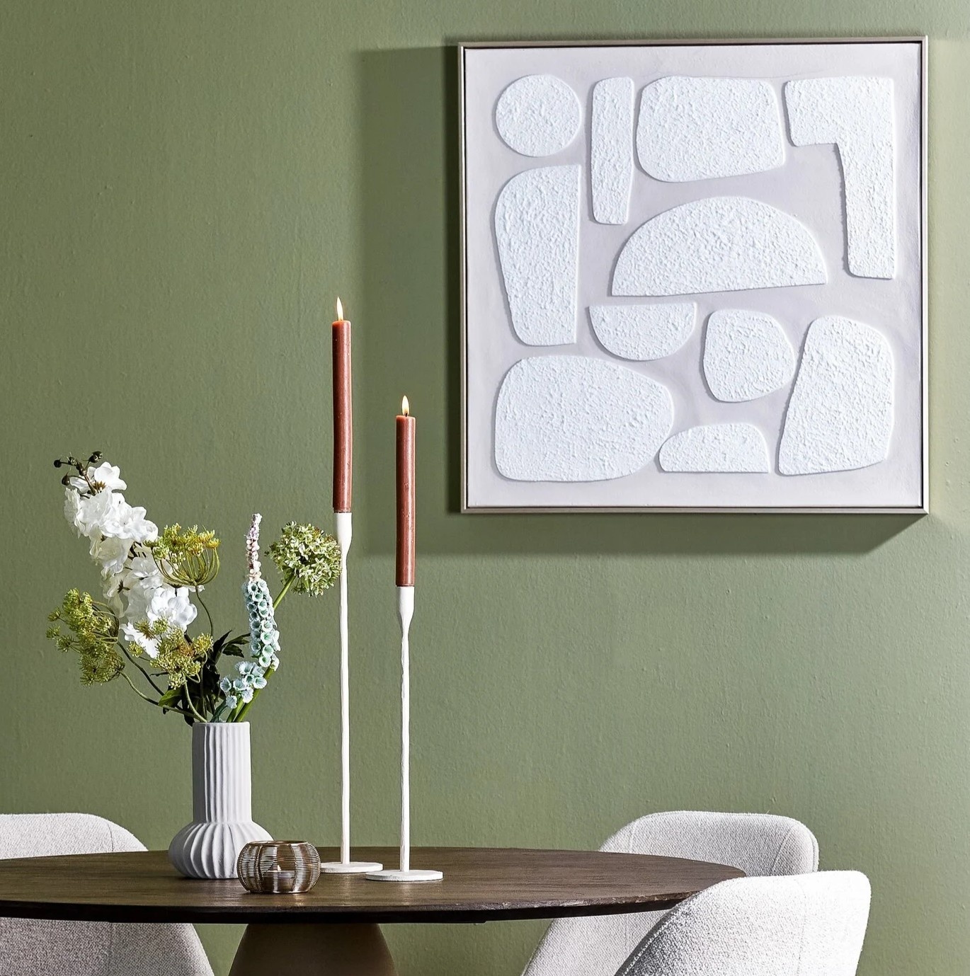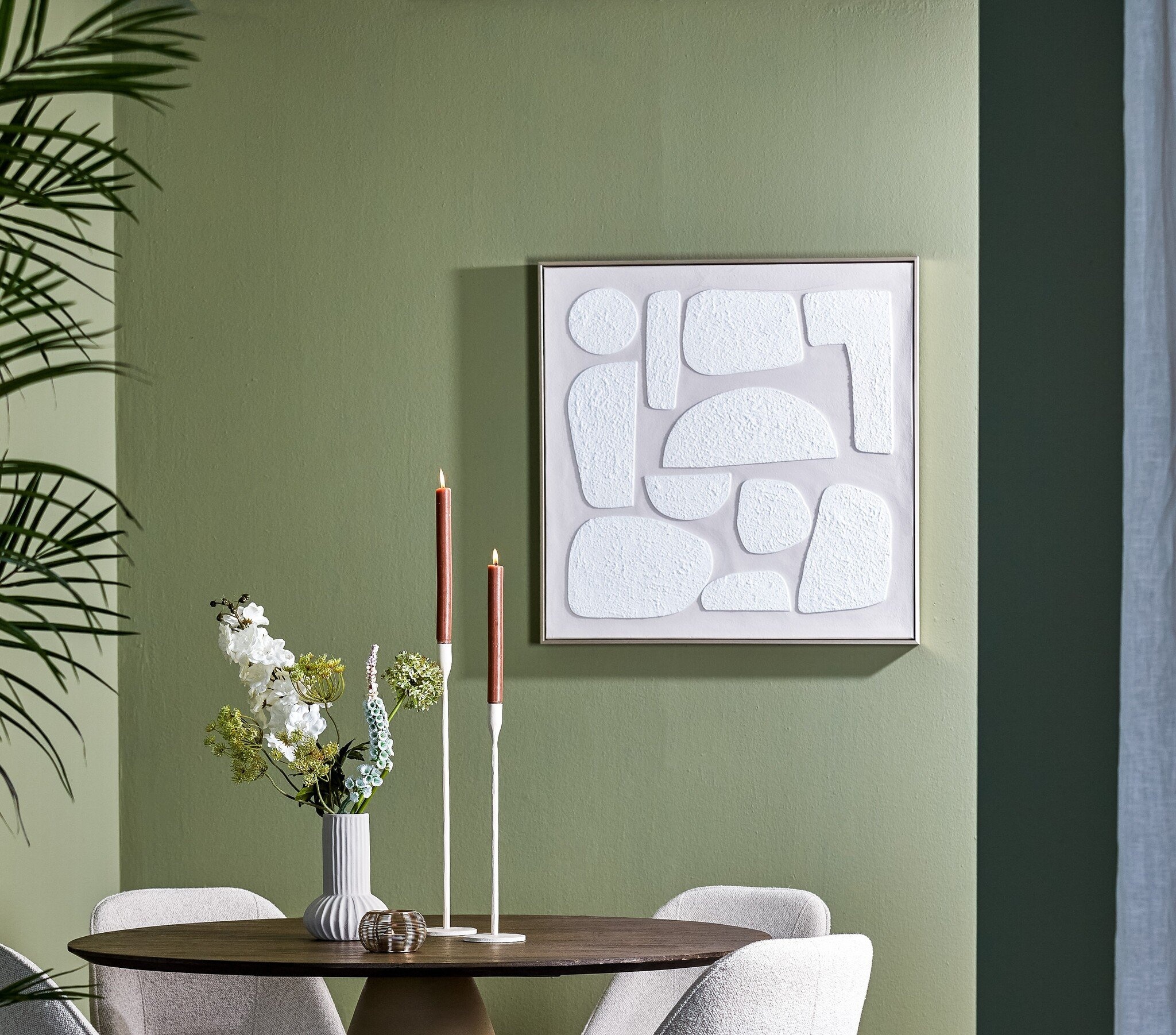 Met zijn royale afmeting van 80 x 3,5 x 80 cm is NIEVES een echte blikvanger boven de bank, in de hal of boven een dressoir. De natuurlijke kleurtinten zorgen ervoor dat het kunstwerk gemakkelijk te stylen is met andere materialen zoals hout, bouclé, linnen en aardetinten.