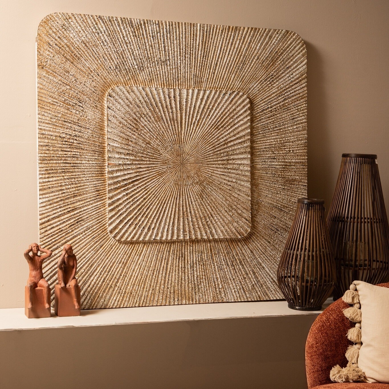 De rustige crème kleur en subtiele warme tinten geven dit MDF wandpaneel een natuurlijke uitstraling die perfect past in zowel moderne, landelijke als bohemien interieurs.